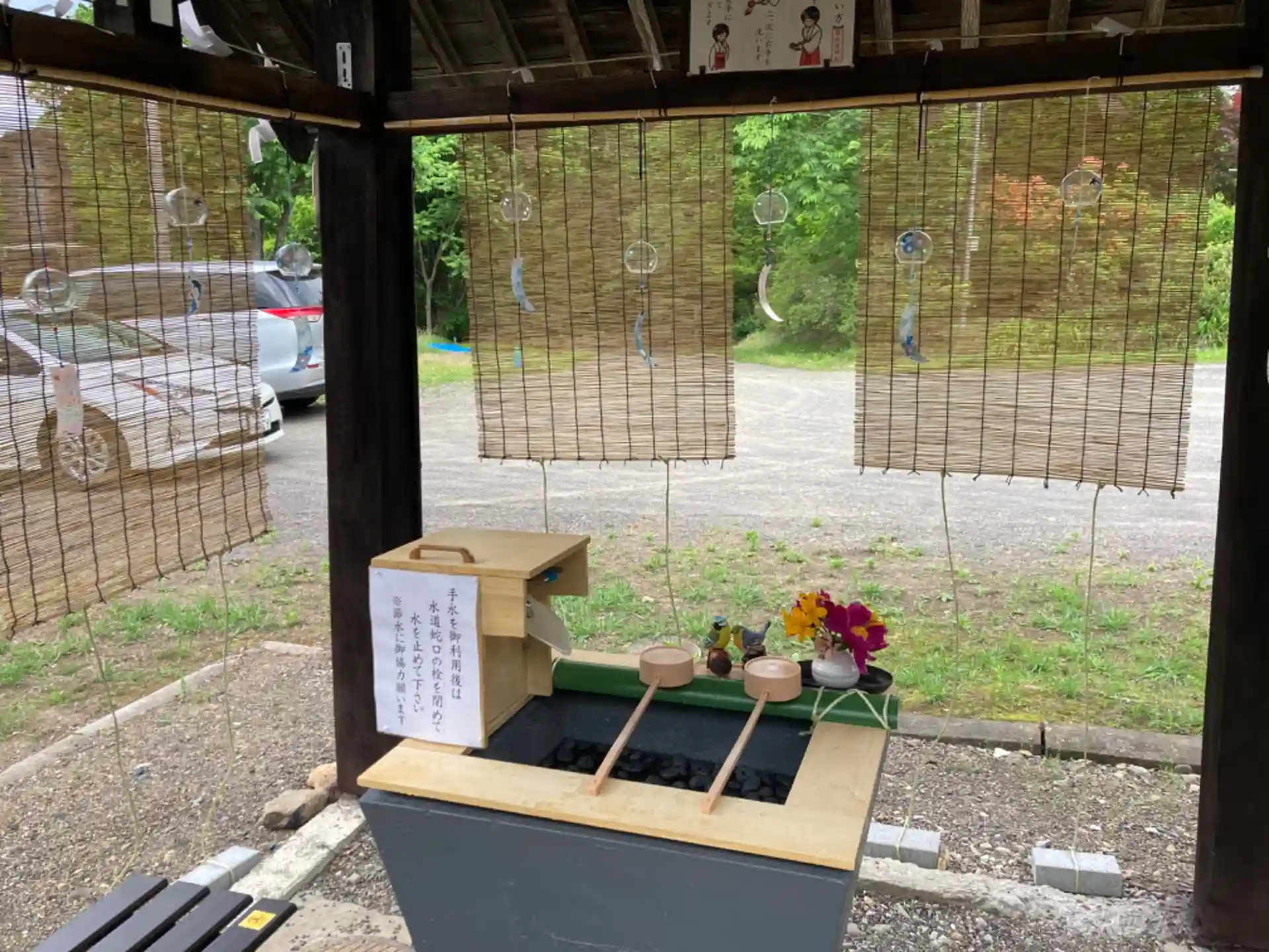 手水舎内も夏らしくディスプレイされてました。