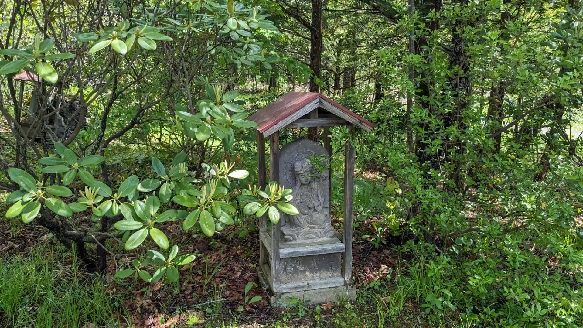 留辺蘂神社の隣りにあります。参道入口には龍神宮ㇳ修業大師像。境内には八十八ヶ所の石仏が点在し綺麗なお庭もありました。