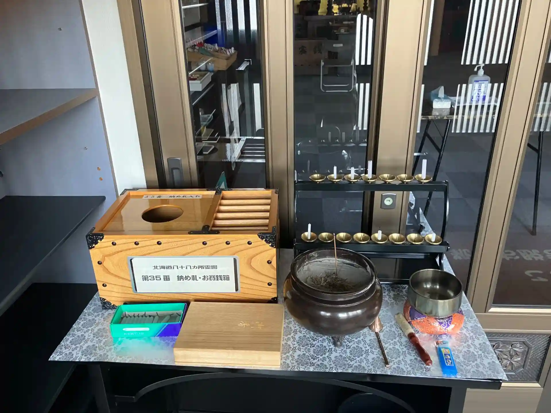 本堂玄関入って右手には、オリジナル御朱印とか催事案内書などがあります。