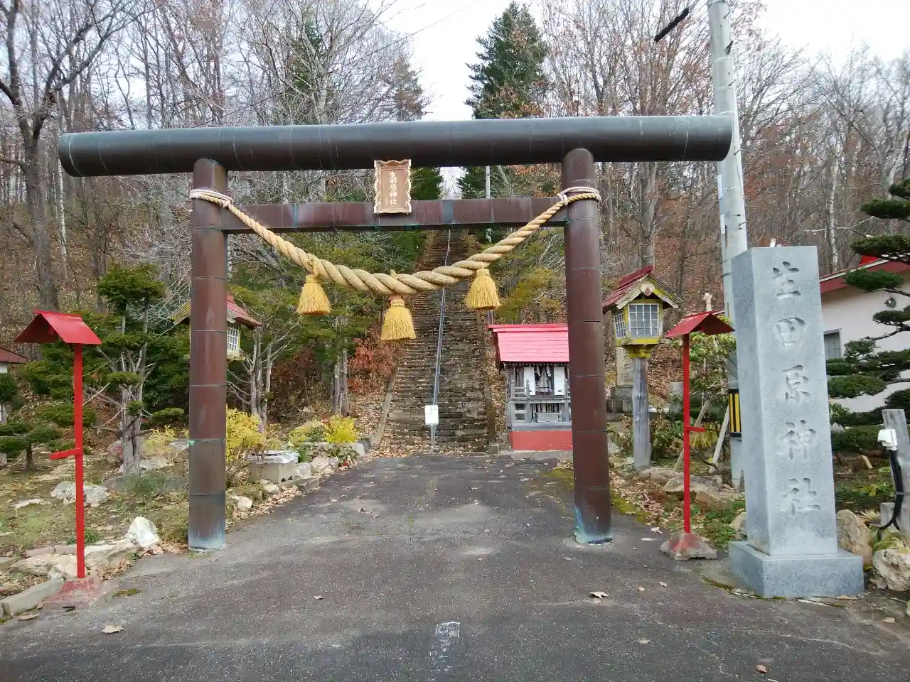 鳥居の右側にある住宅には社務所の看板😊