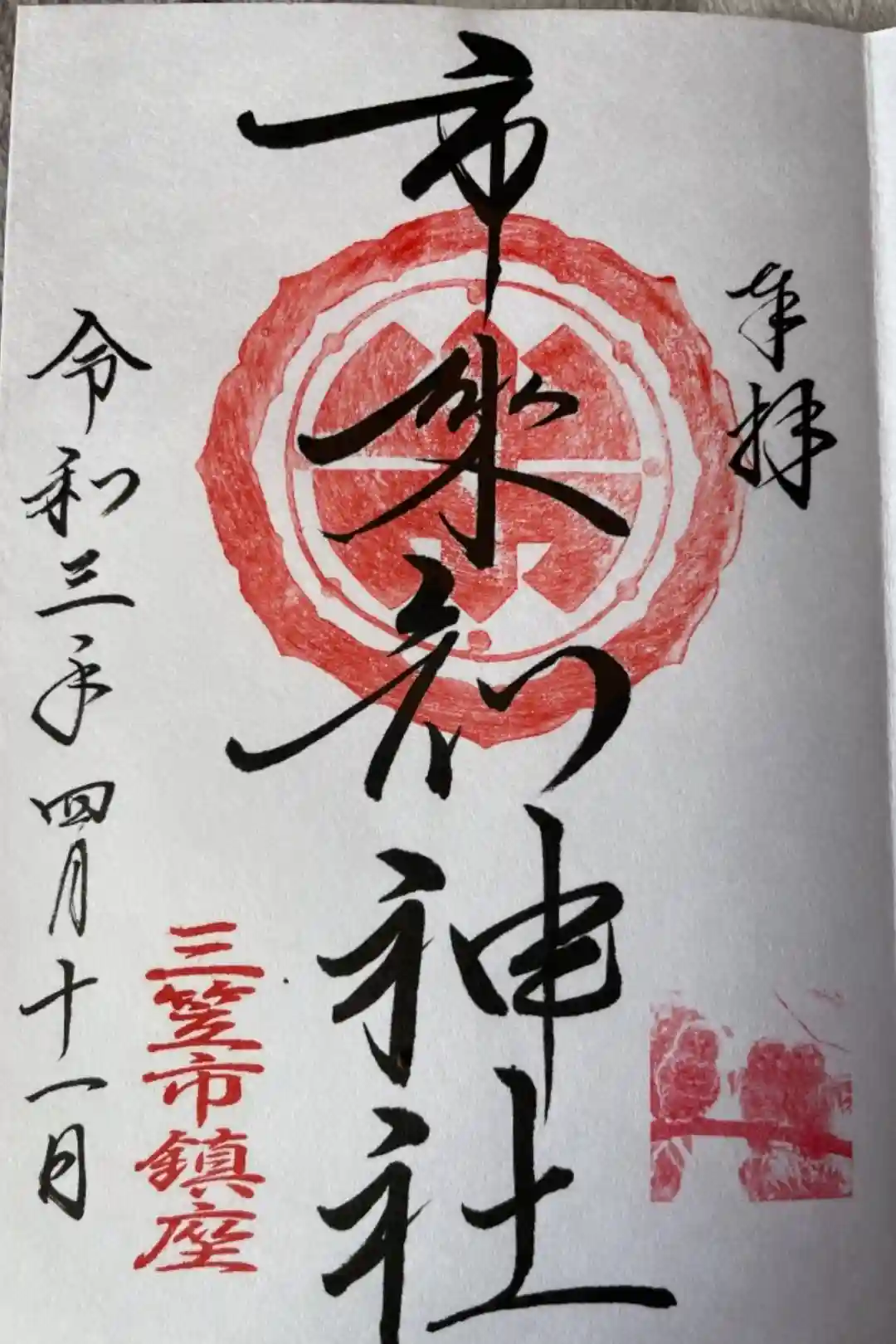直書きの御朱印です