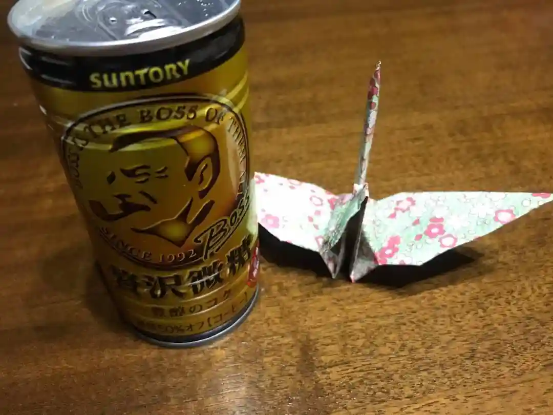 宮司さんの奥様から折り鶴と缶コーヒーを頂きました☕️