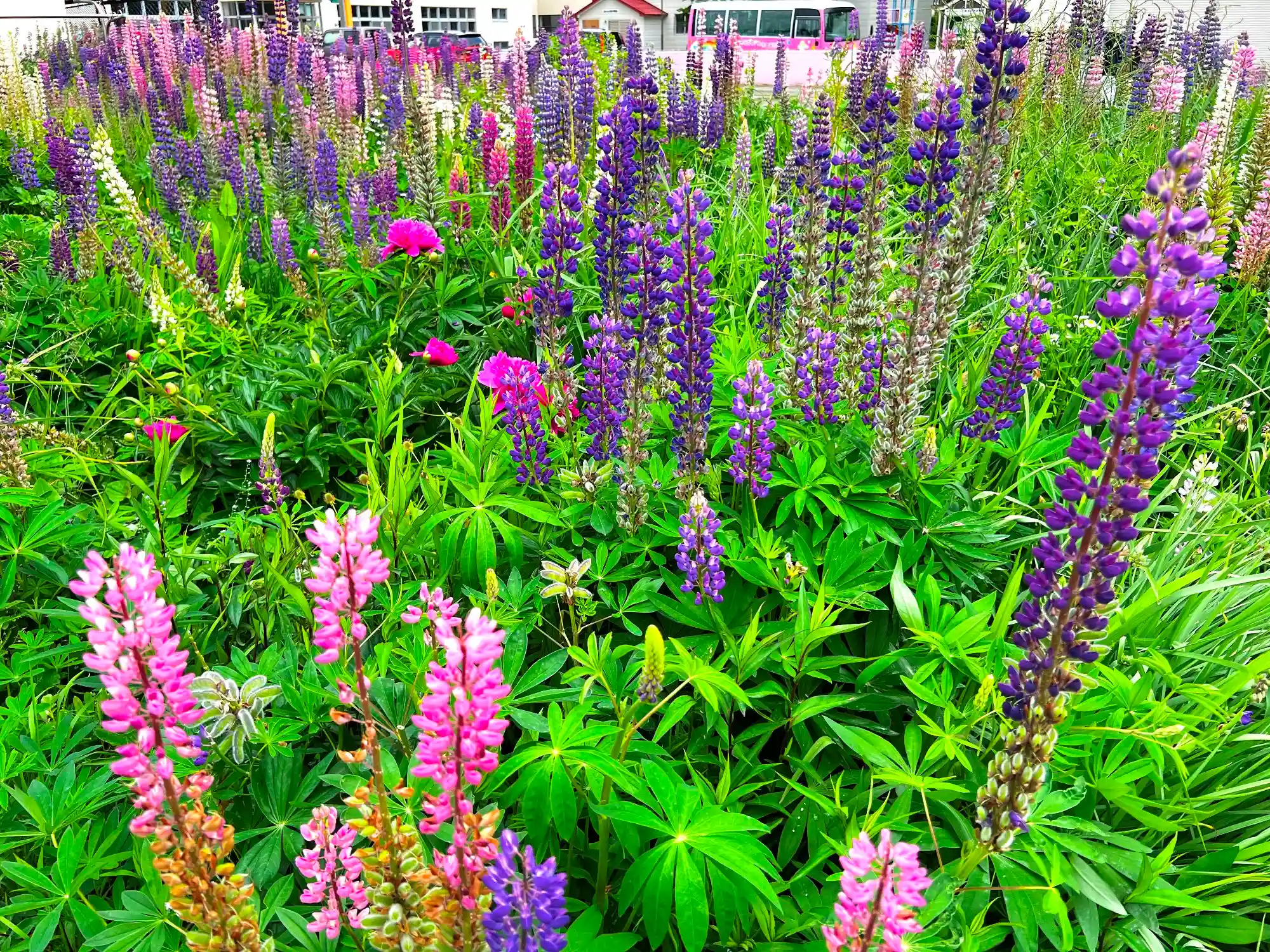 めちゃくちゃきれいなお花は、<ルピナス>と言うんですね。名前が分からず<草むら>と書いてしまいました...(^_^;)