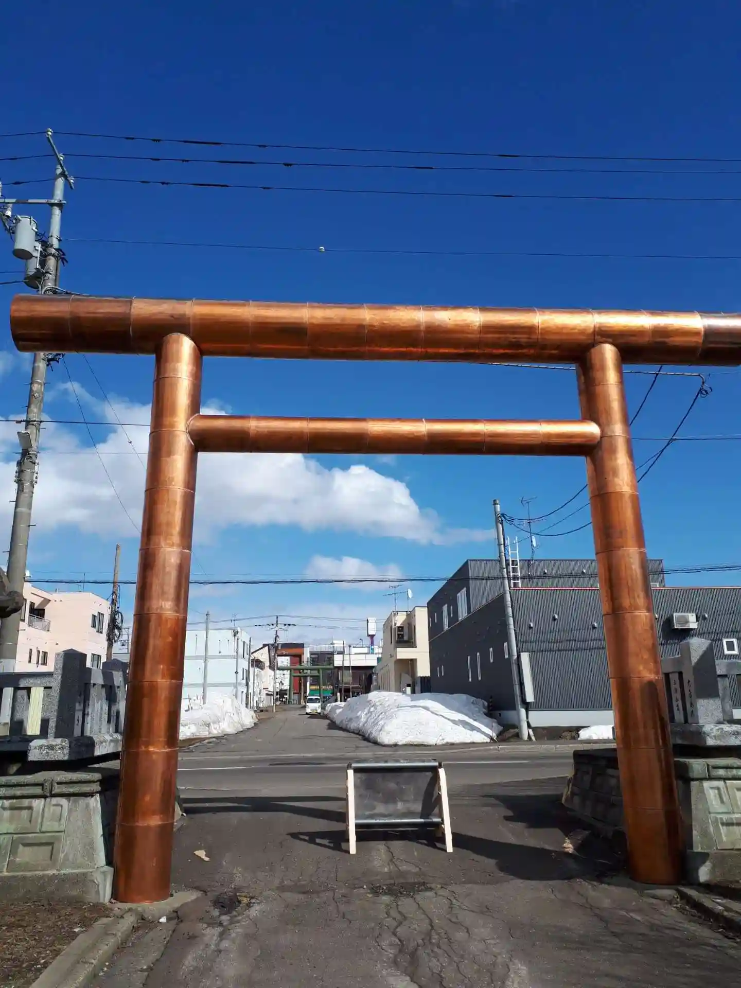 寒いけど抜けるような青空に金ぴかの鳥居。お参りしてる人は誰もいない…。