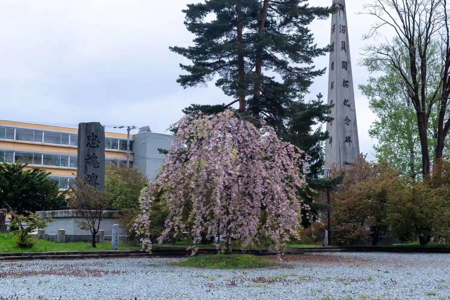 その奥には<沼貝開拓記念碑>と書かれた、かなり高い石塔が見える。
