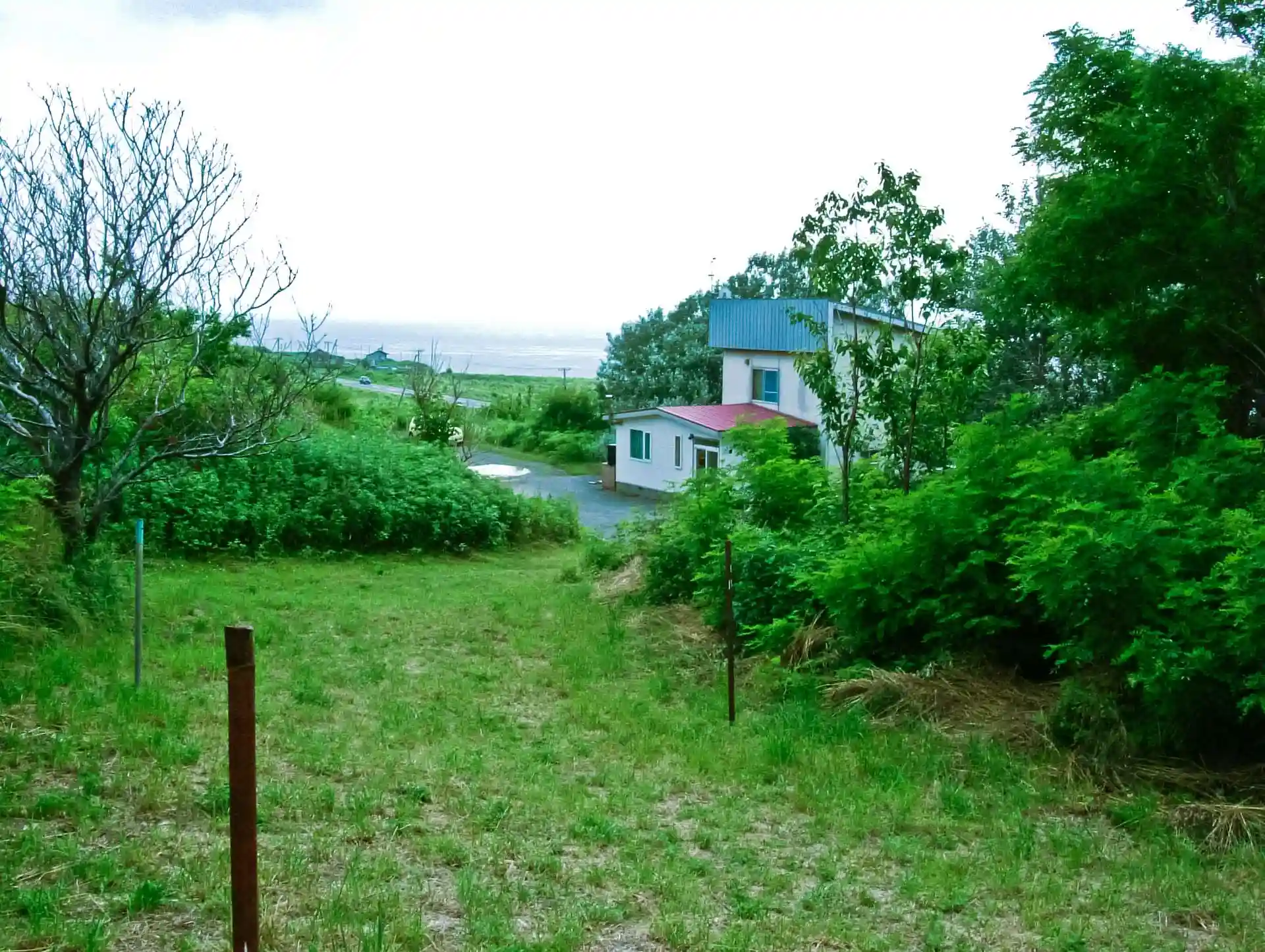 さして広くない境内から見下ろすと向こうに見えているのが日本海とオロロンライン。旅情たっぷりの道なので暇さえあれば走ったりしてました。