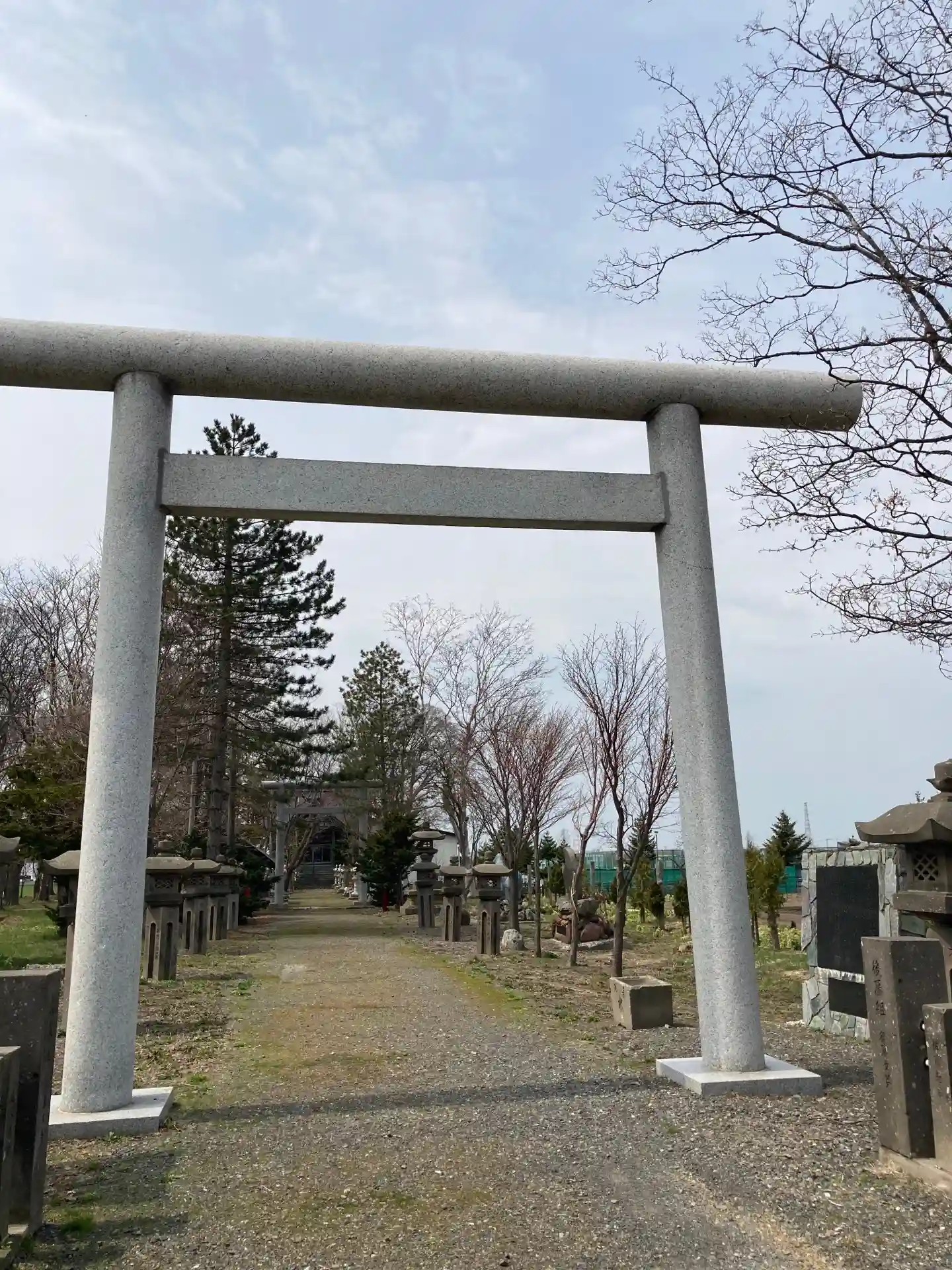 雪が積もる前にお参りしたかった神社です。鳥居が物凄く背高のっぽなのは雪深いからだと思われます。社務…