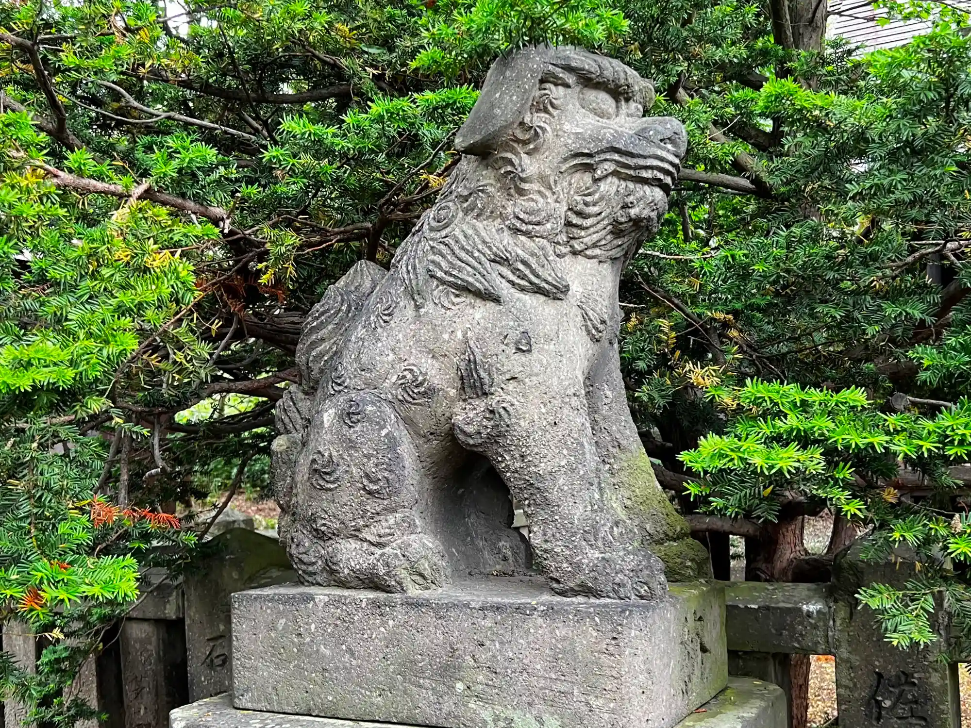 参道右側の<狛犬>。頭が大きく手足が太いので、ちょっと子犬みたいでかわいいかも。