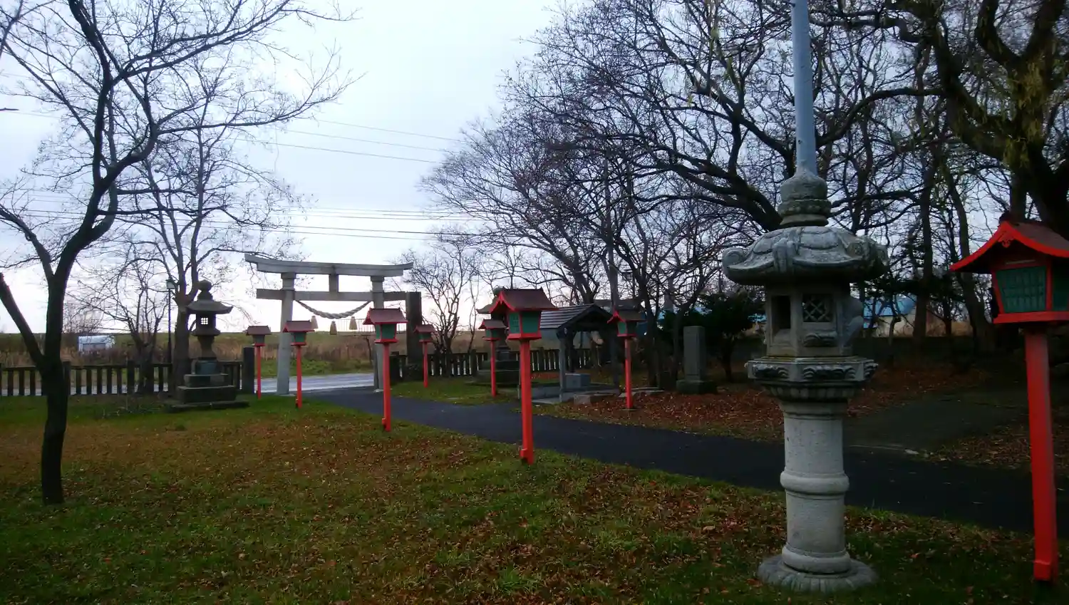 入口の鳥居の裏側。当社創建前の文化十年(1813年)と刻まれており、北海道で最も古い鳥居の1つなのかな。鳥居の前は、何もない吹きさらしの草原。