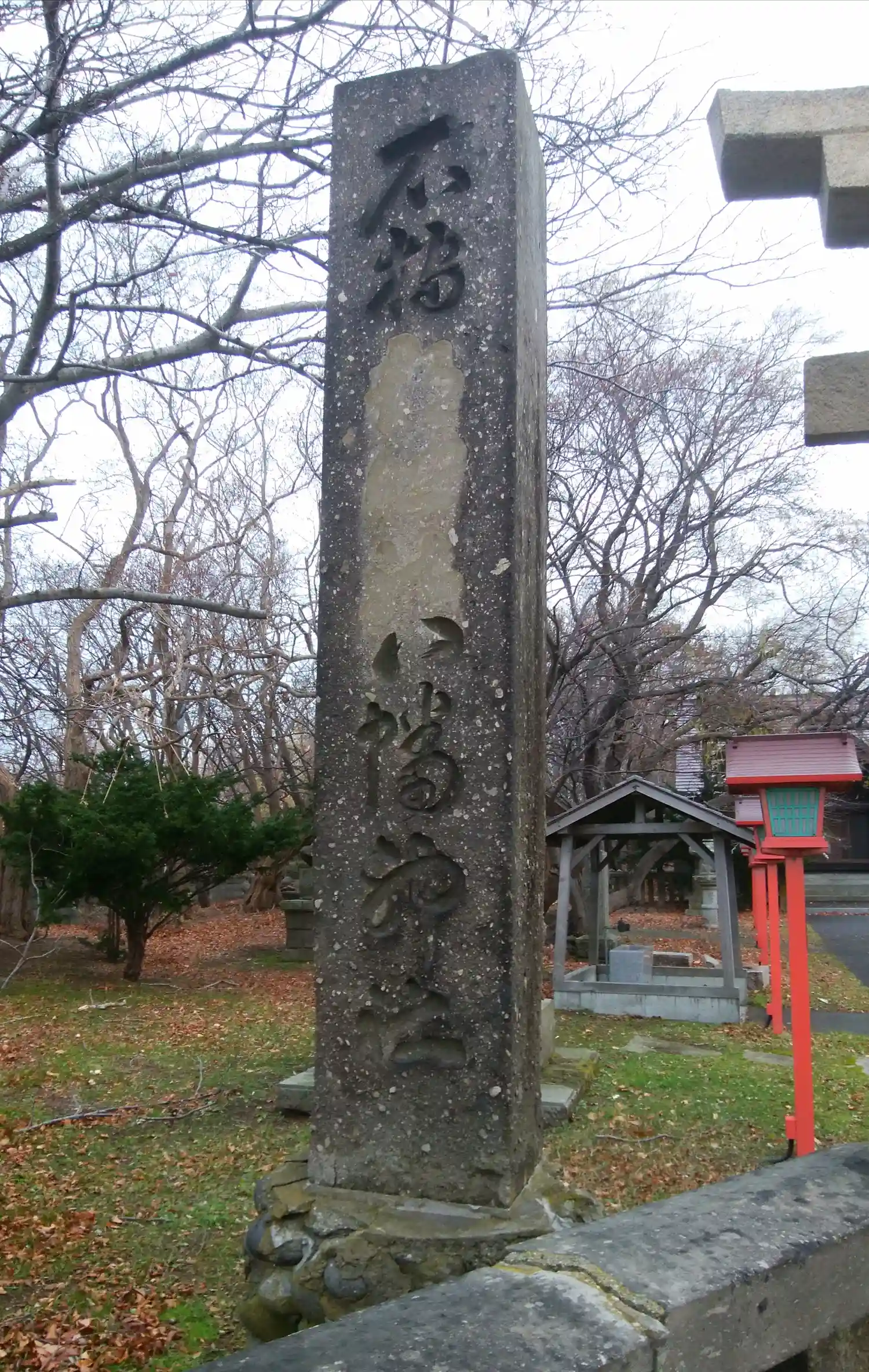 入口の鳥居の裏側。当社創建前の文化十年(1813年)と刻まれており、北海道で最も古い鳥居の1つなのかな。鳥居の前は、何もない吹きさらしの草原。