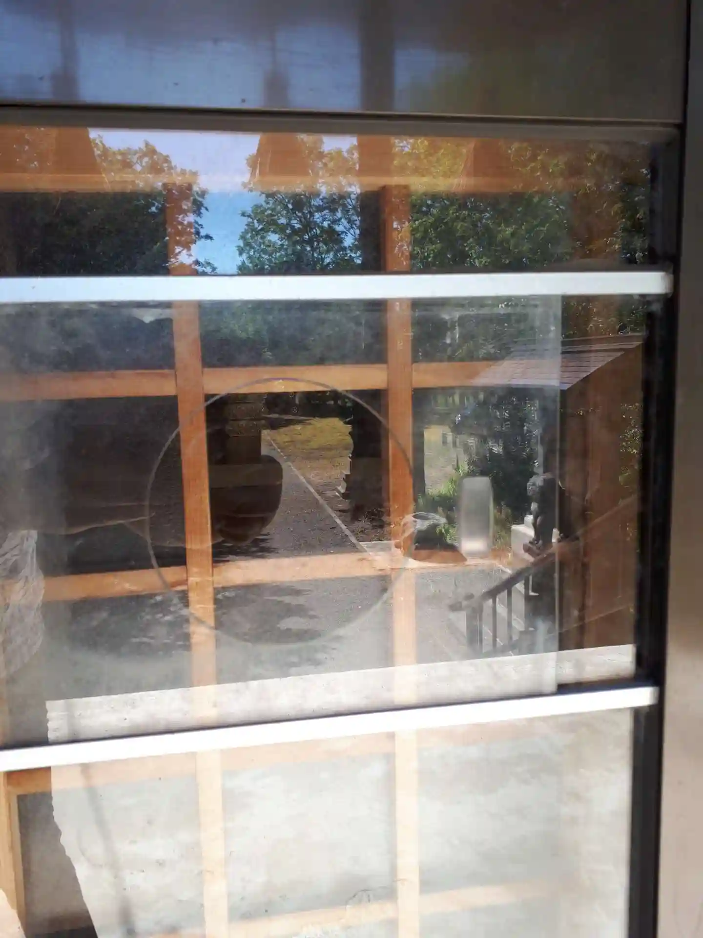 ガラスの引き戸を開けたら丸いあながあった。昔こんなガラスの引き戸がついた戸棚があったなぁ