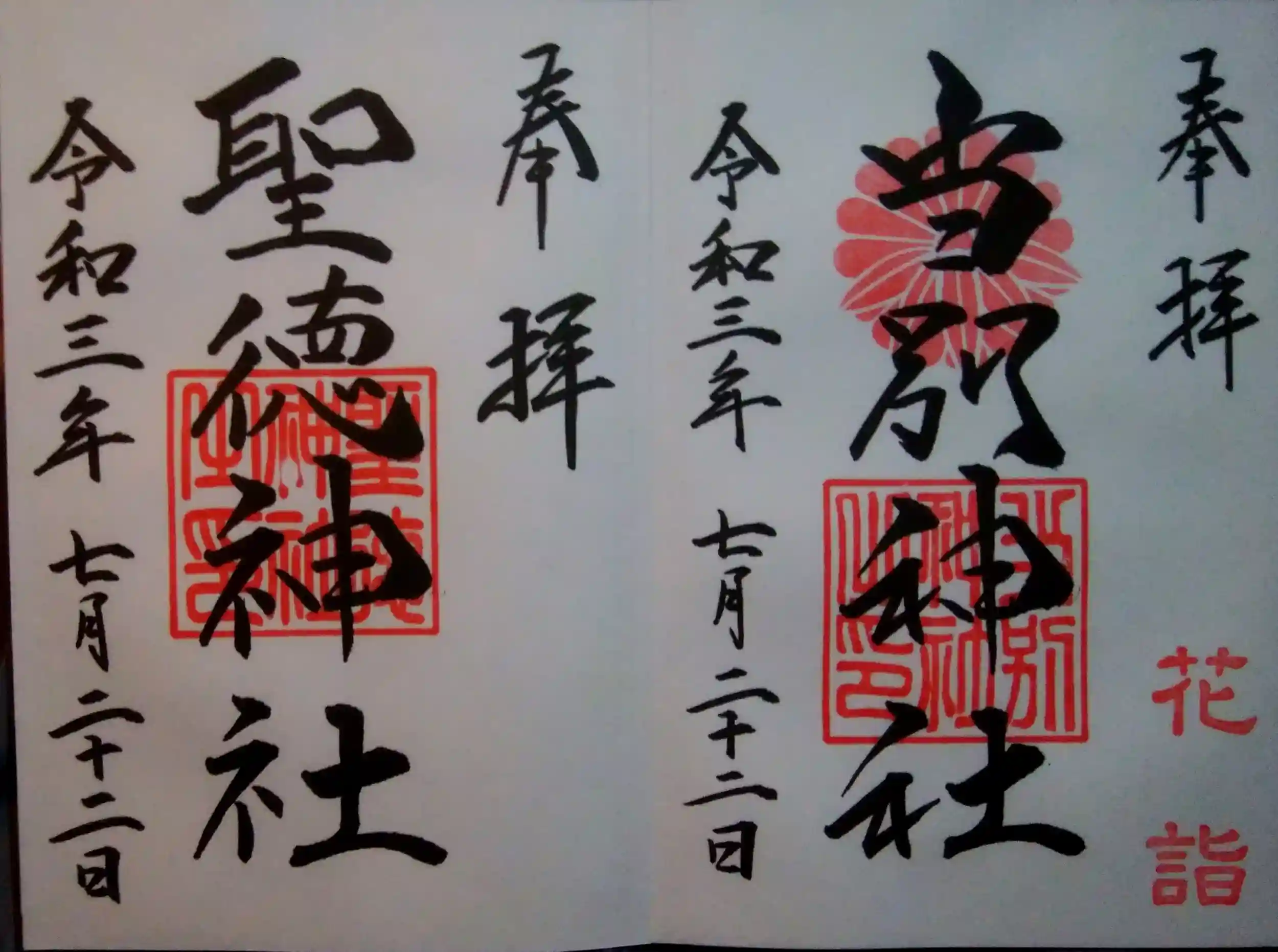 御朱印はお書入れいただけるとのことで、聖徳神社さんの方も拝領しました。