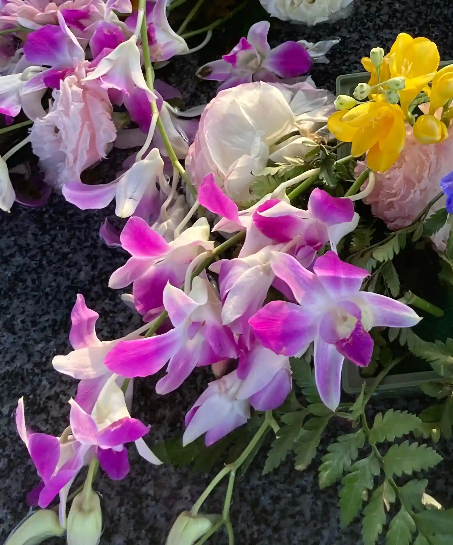 お花も夕陽を浴びると、一層優しい色になりますね♡