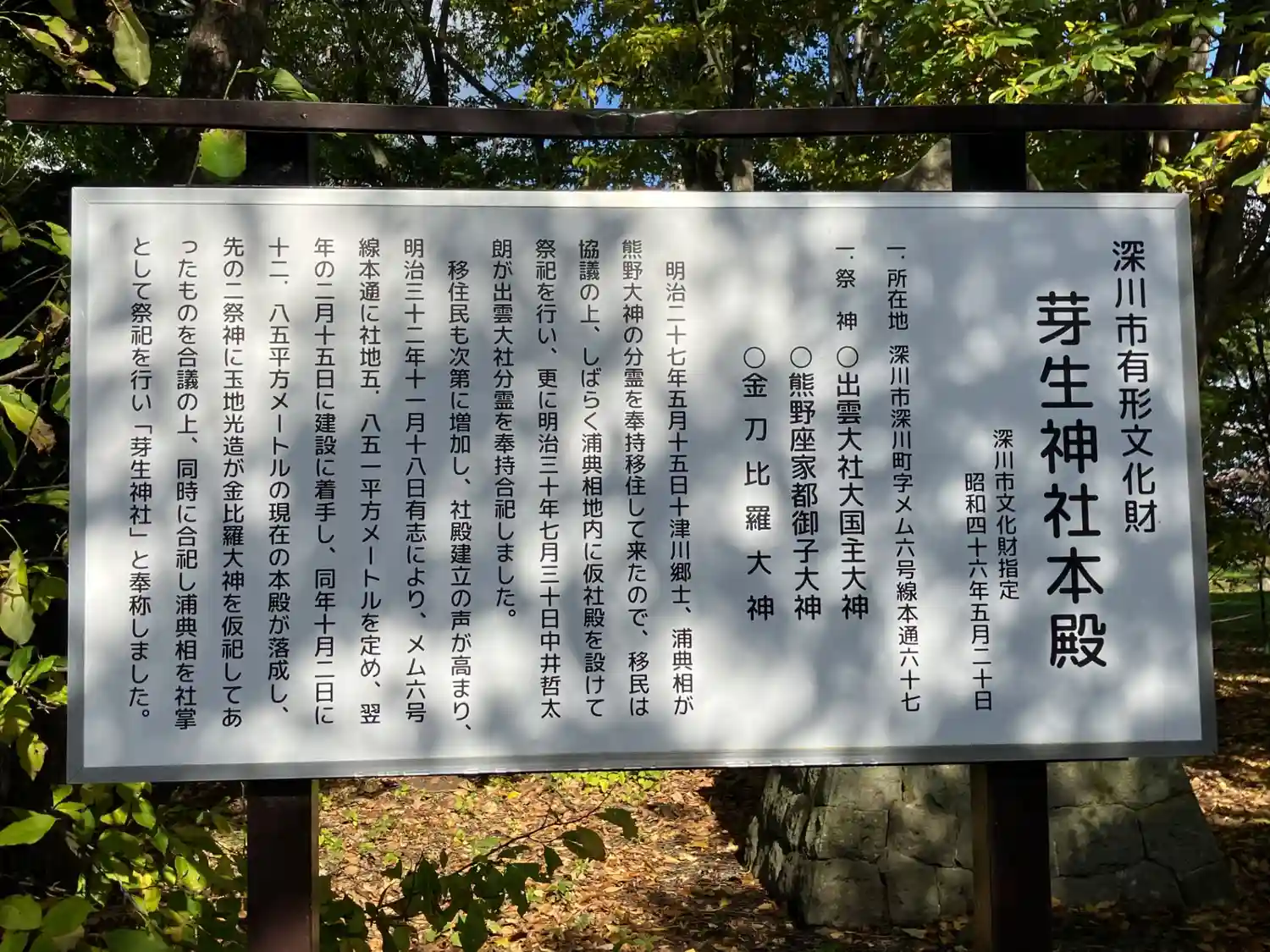 芽生神社本殿は深川市有形文化財指定。