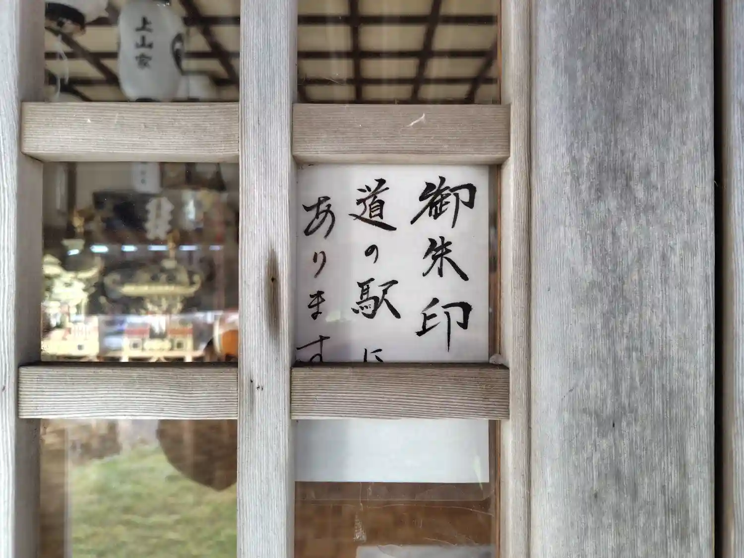 拝殿には「御朱印道の駅にあります」と書かれた紙が貼りつけられていました。