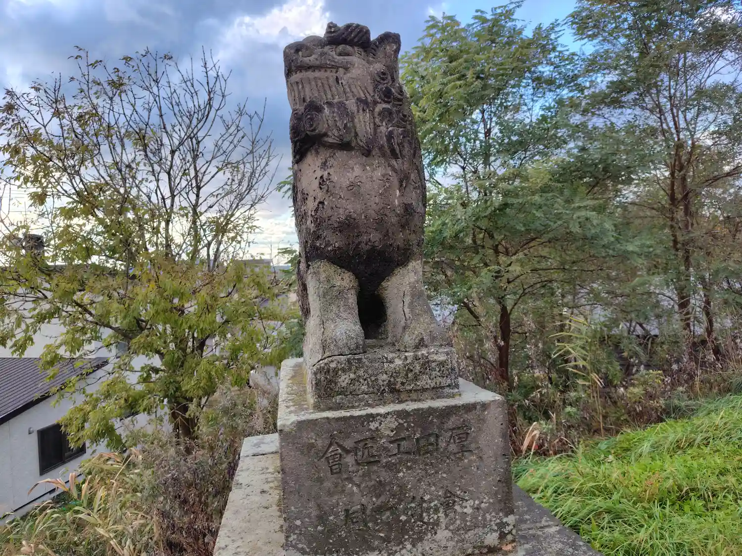石段を上っていくと一組の狛犬がありました。