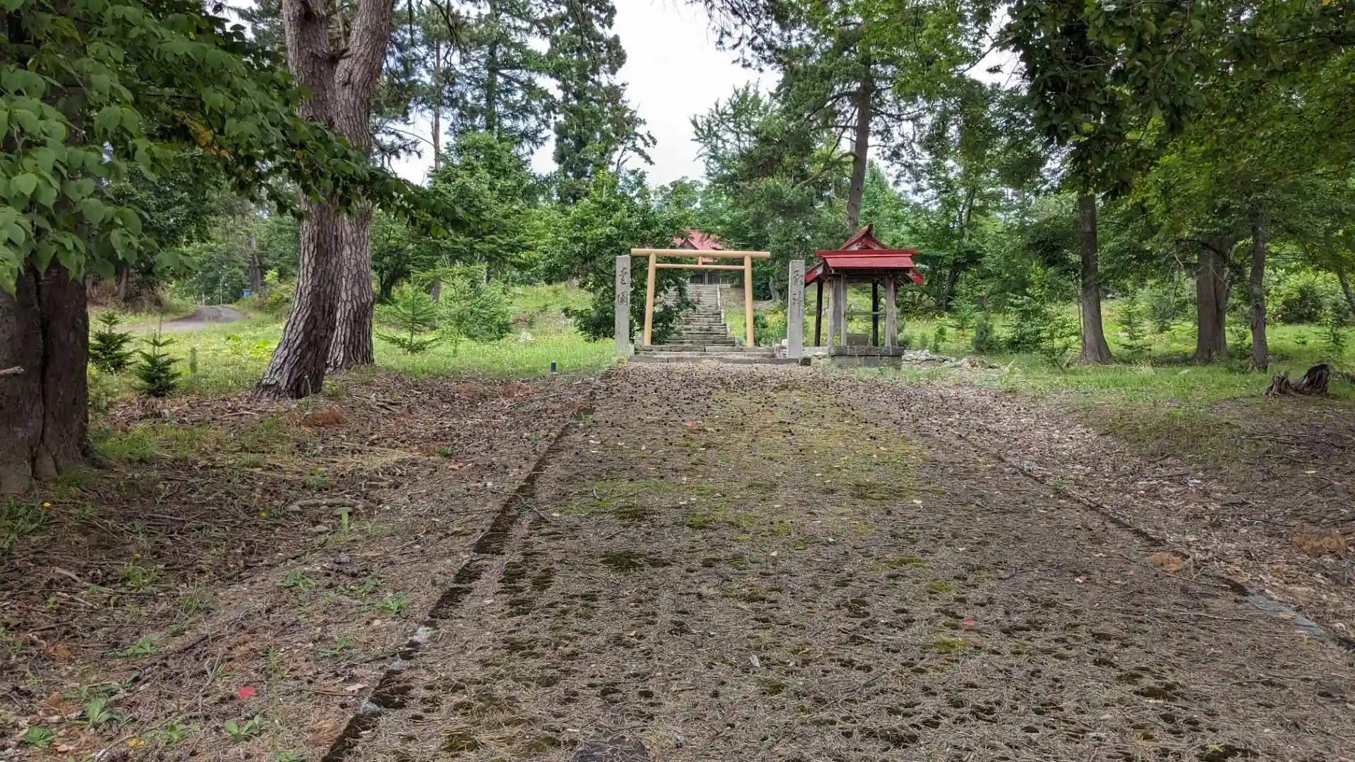 市街地から離れている無人の神社。社殿横に駐車場とトイレがあります。黄色い鳥居が印象的。夏場だったので虫がたくさん飛んでいて参道を歩くのも大変。境内に建てられた忠魂碑の揮毫は二・二六事件で凶弾に倒れた旭川第七師団の渡辺錠太郎。社殿内には御賽銭箱とおみくじと記帳があります。記帳を見てみると最後に参拝した方は今年の1月でした。壁には共成神社の沿革と祀られている神様について書かれていました。