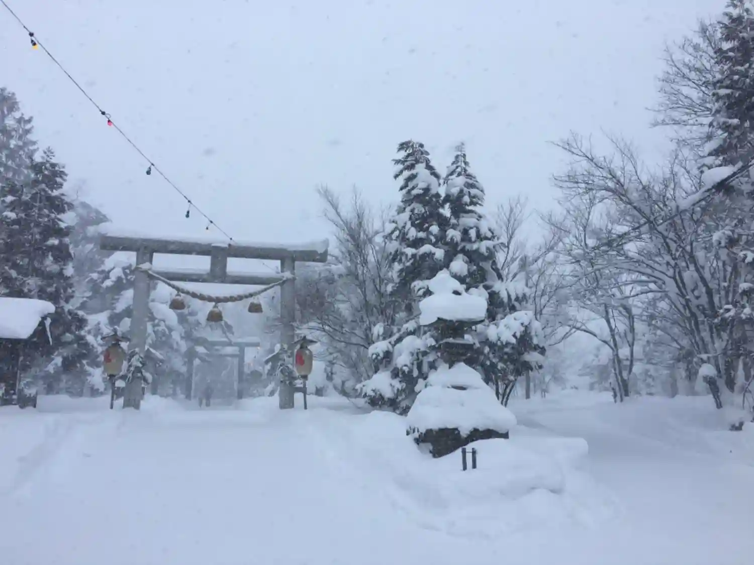 厳しい自然環境と対峙しなくてはならなかった開拓の昔を偲ばせるような吹雪の参拝。