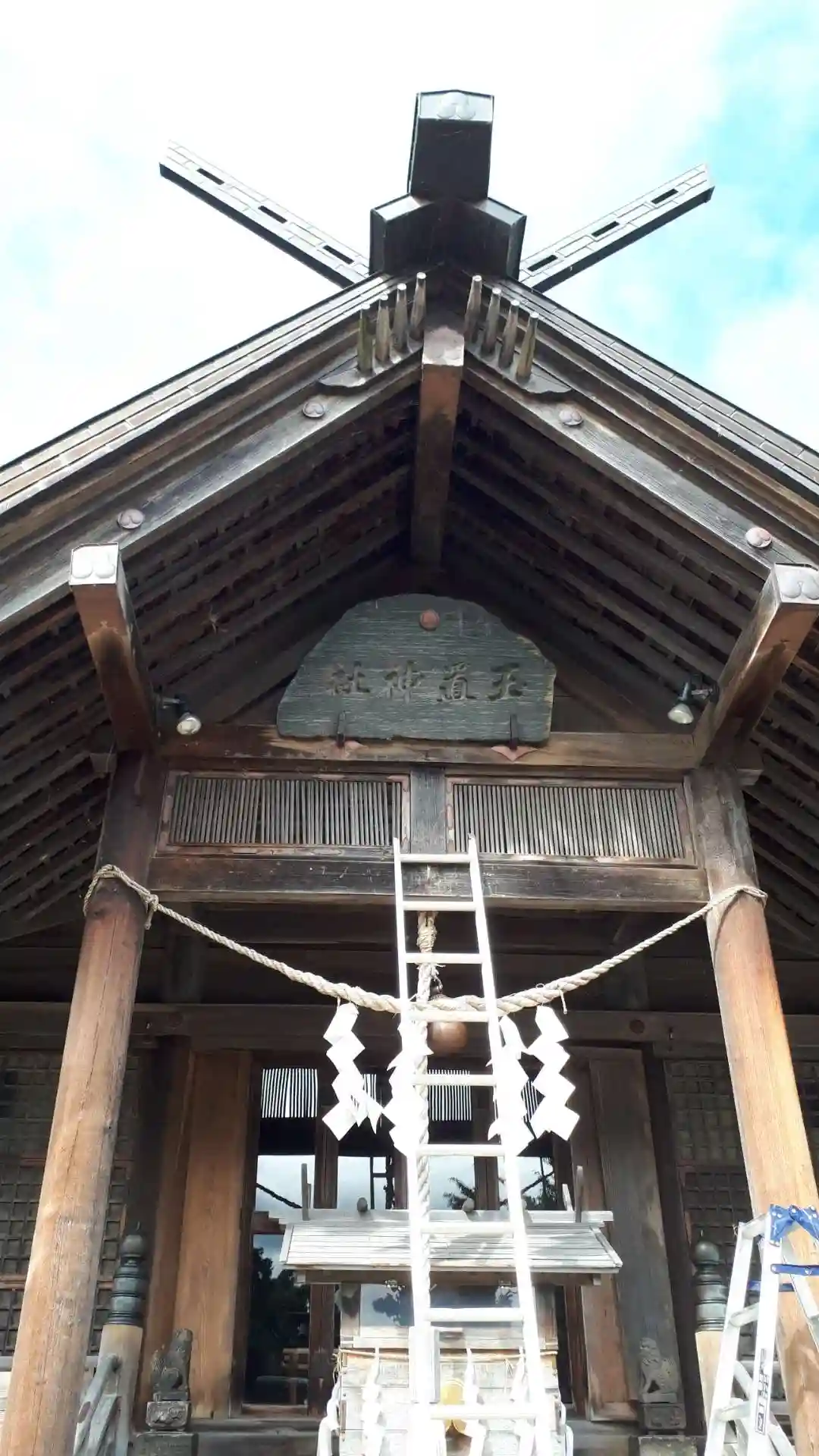 お賽銭箱の前に「はしご」がかかっておりますがお参りさせていただきました。