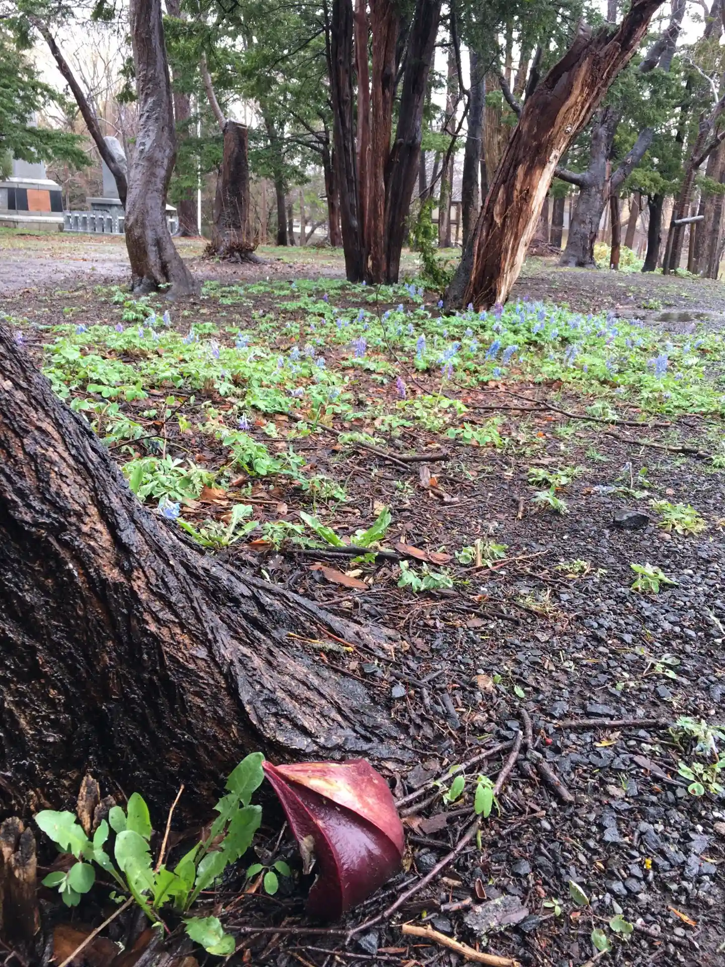 大麻神社の御朱印と、以前ホトカミユーザーさんの投稿で知ったザゼンソウを目当てに。雨でクロッカスは花びらを閉じていましたが、水仙も咲き始め、エゾエンゴサクまで見られるとは思いませんでした。