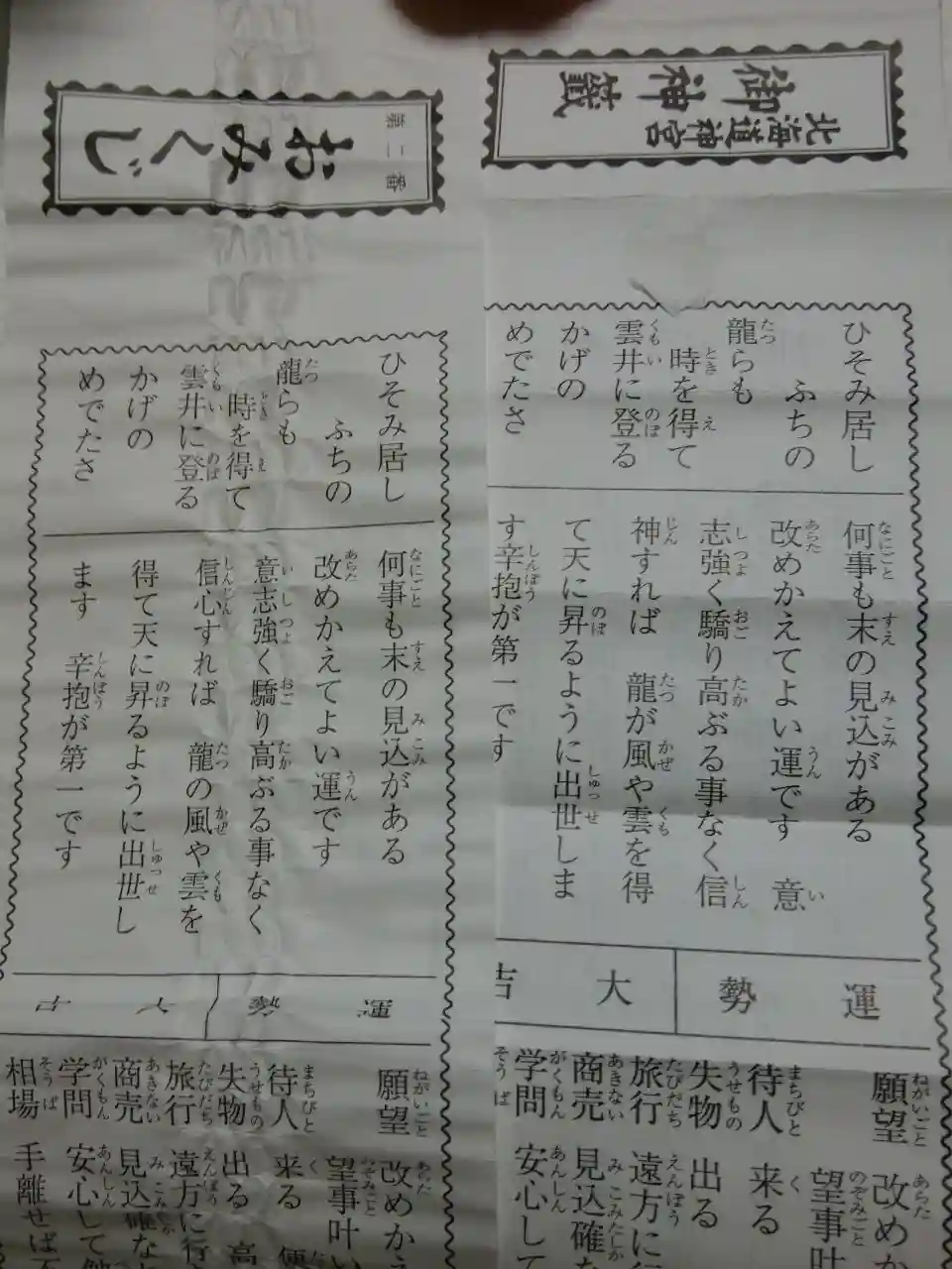 おみくじは大吉✨しかも、(北海道神宮)頓宮で引いた今年の初みくじと全く同じもので驚きました!龍が出てくる印象深い内容だったので、帰宅して確認したらやはり同じ☘️