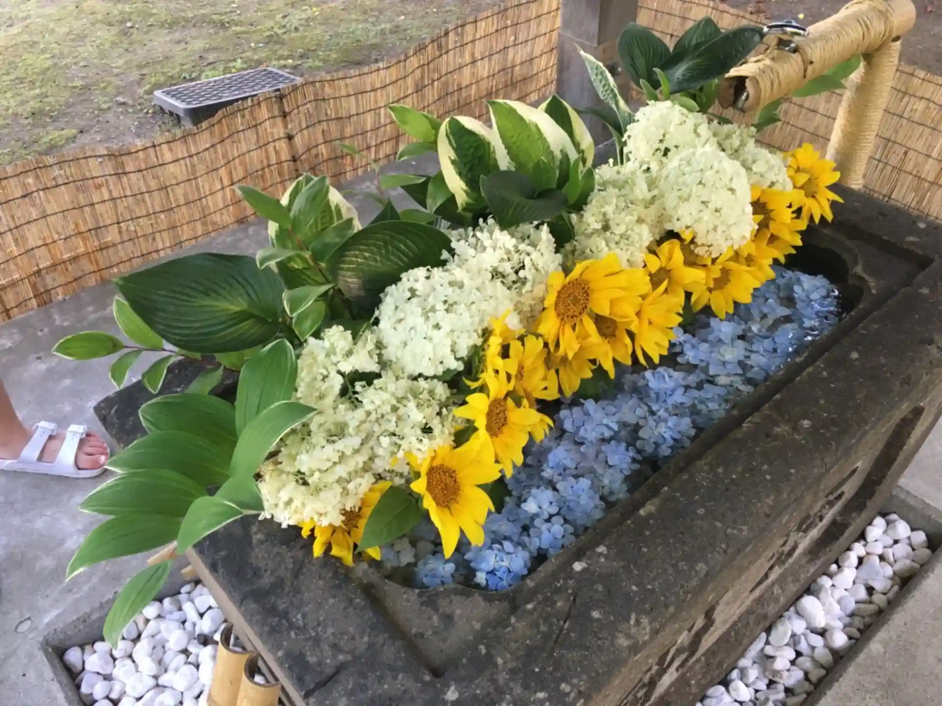 手水舎は風鈴×花手水。
