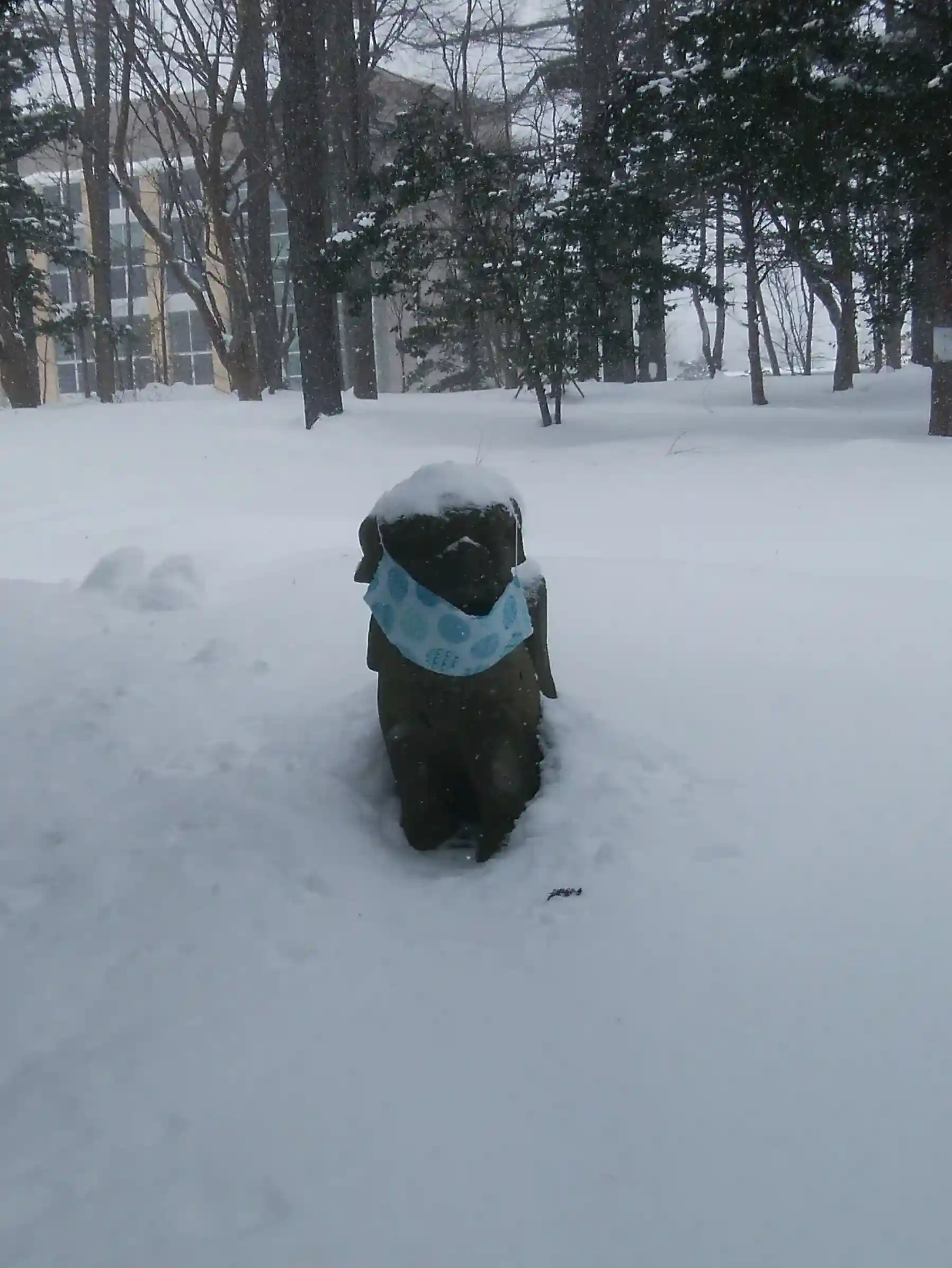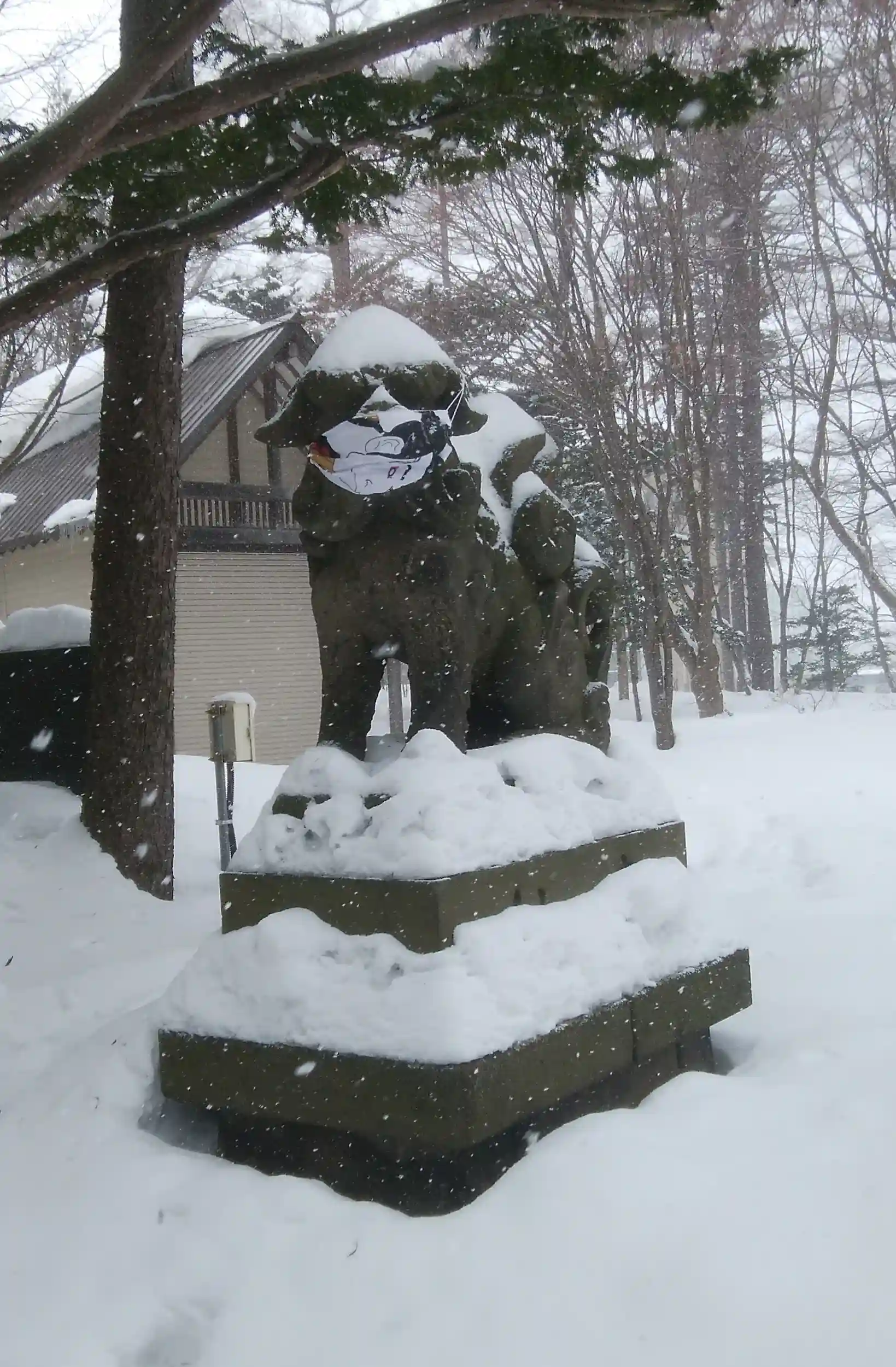 狛犬さん達も雪の中ションボリ
