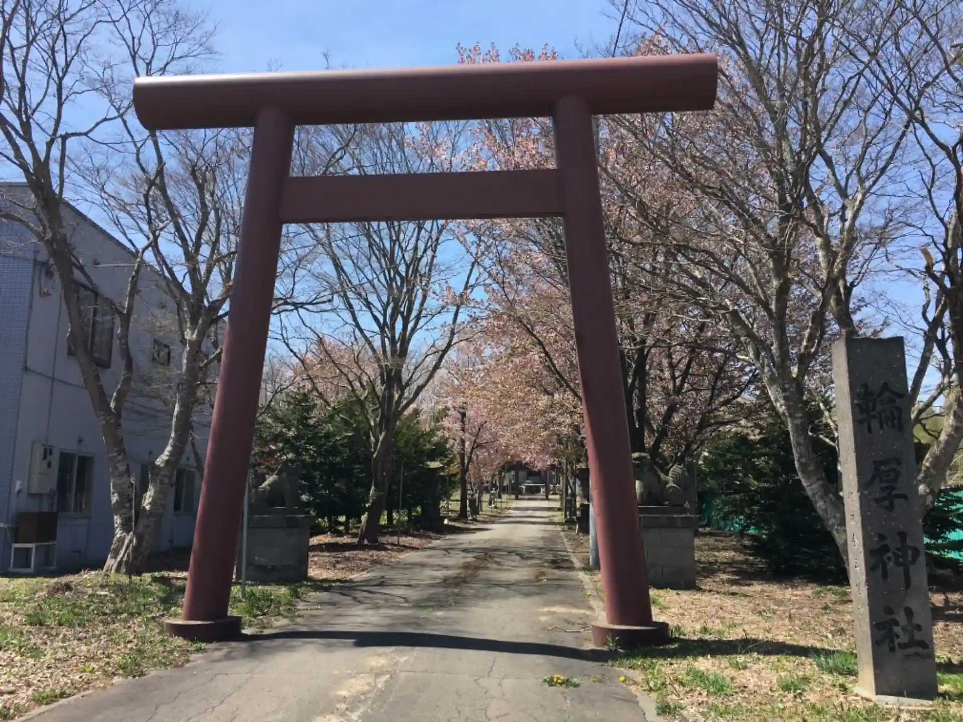 以前の通勤路にありましたが、参道の桜が綺麗な時期に参拝したくて、千歳に行く途中で寄りました。