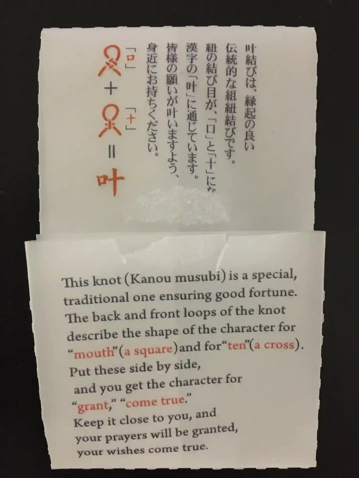 紐の結び目が叶い結びというそうです。
