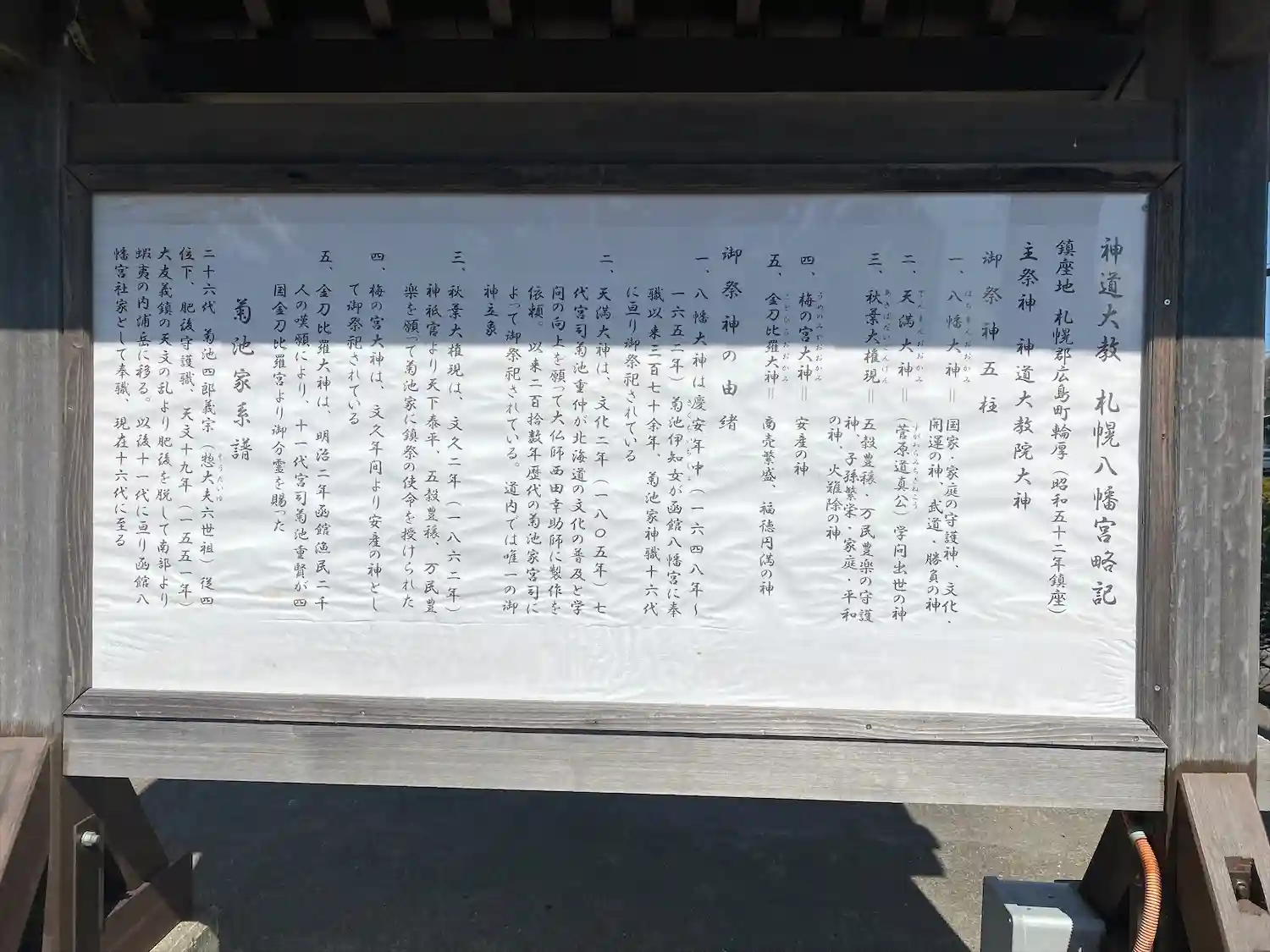 参拝させて頂きました。天気が良くて良かったです。函館八幡宮から勧請されたようです。天文年間に肥後か…