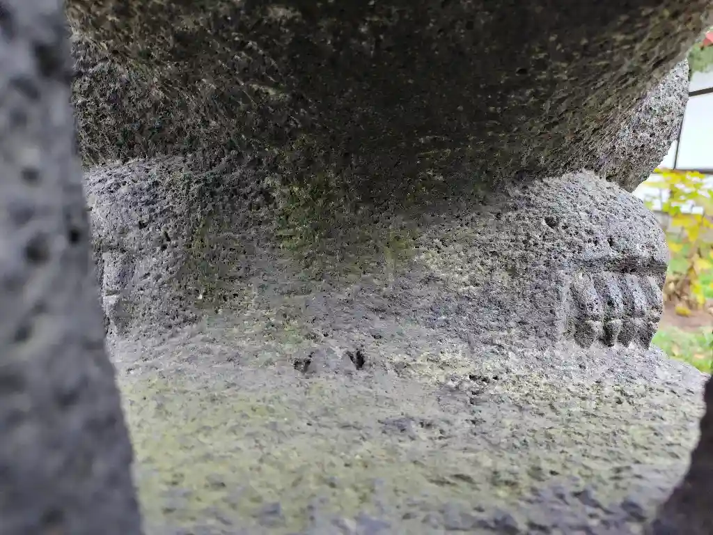 女の子の狛犬はニカッと笑っています。