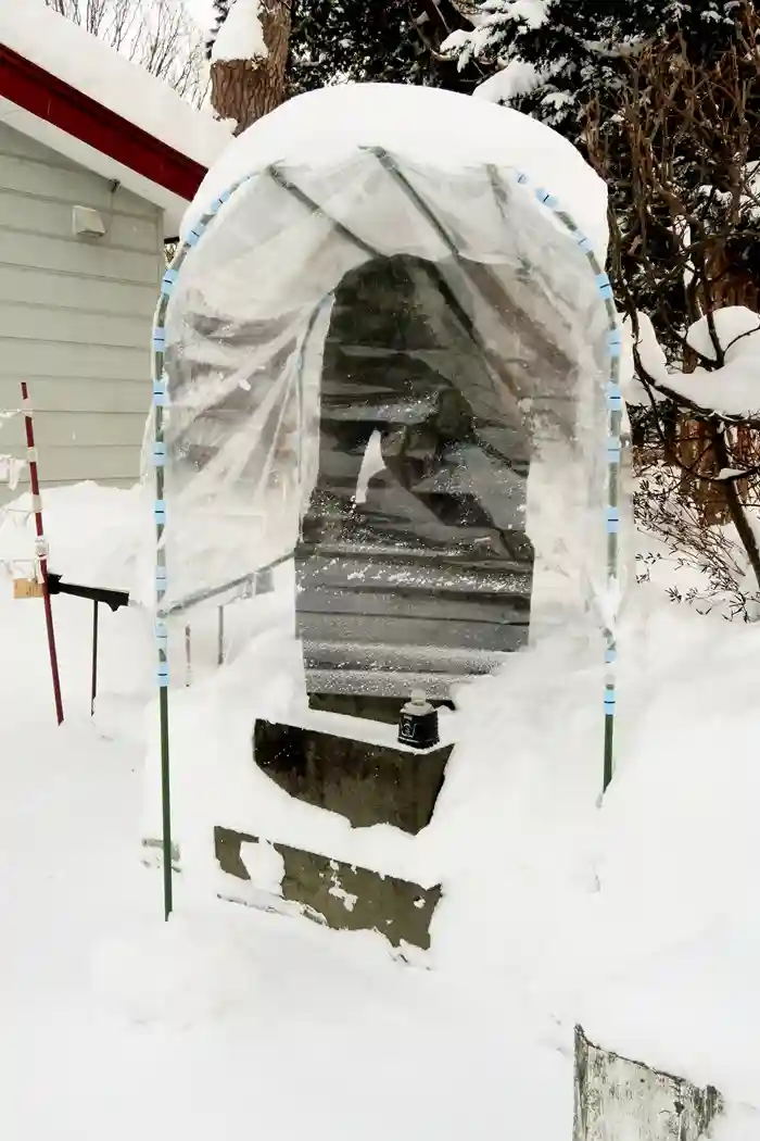 そのせいかは解りませんが、頭上には雪が積もらないようにビニールで覆われてますが