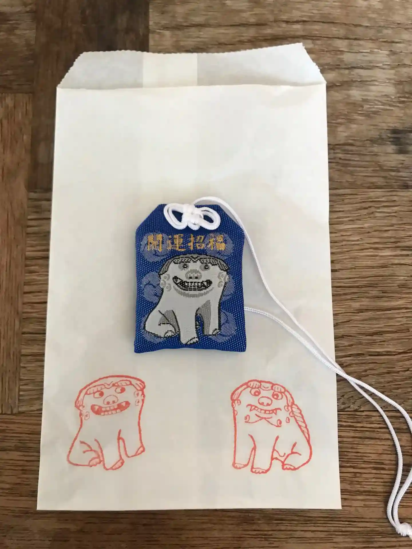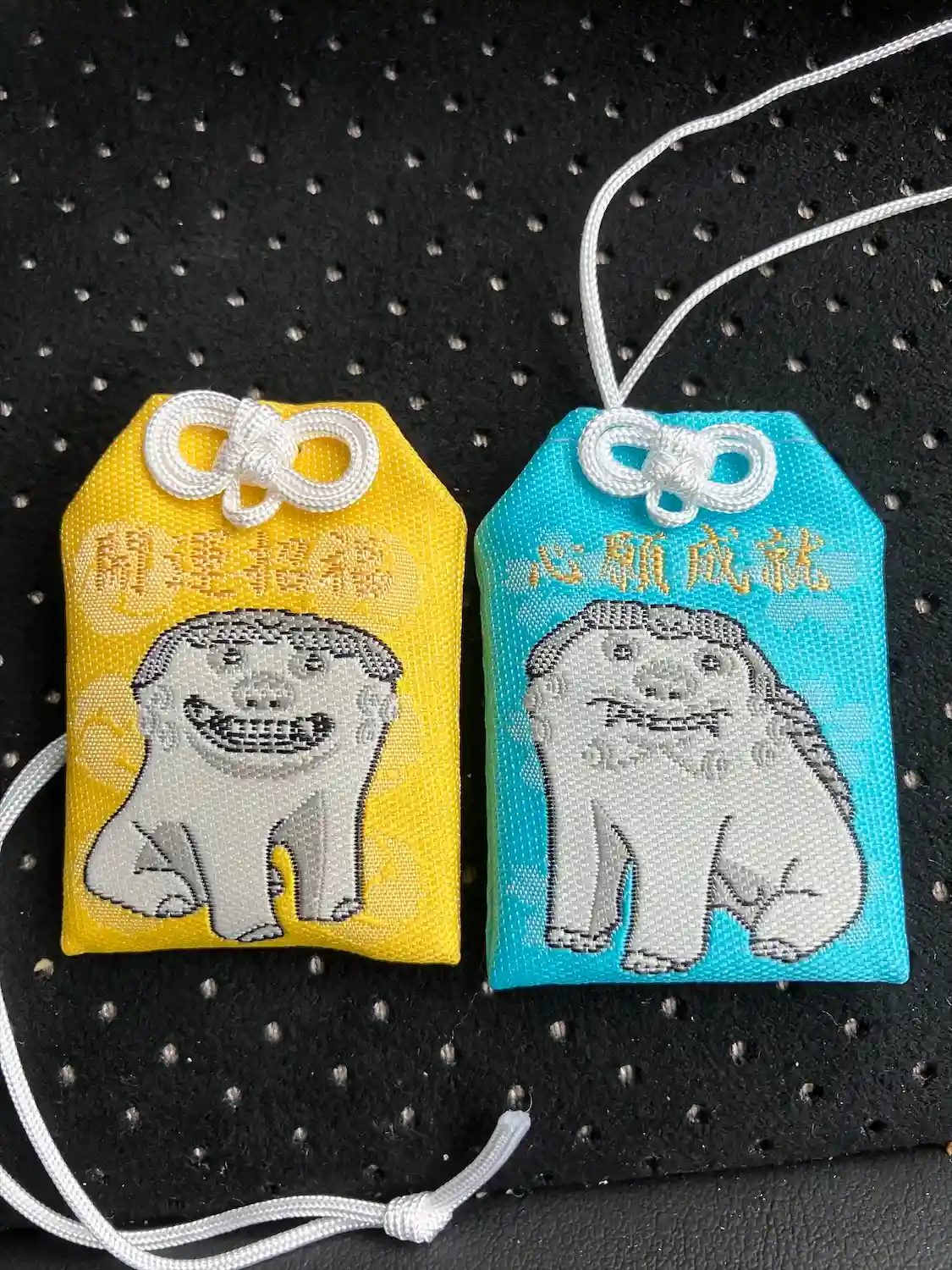 狛犬のお守りは複数の色がありますが、今回は青と白にしました。