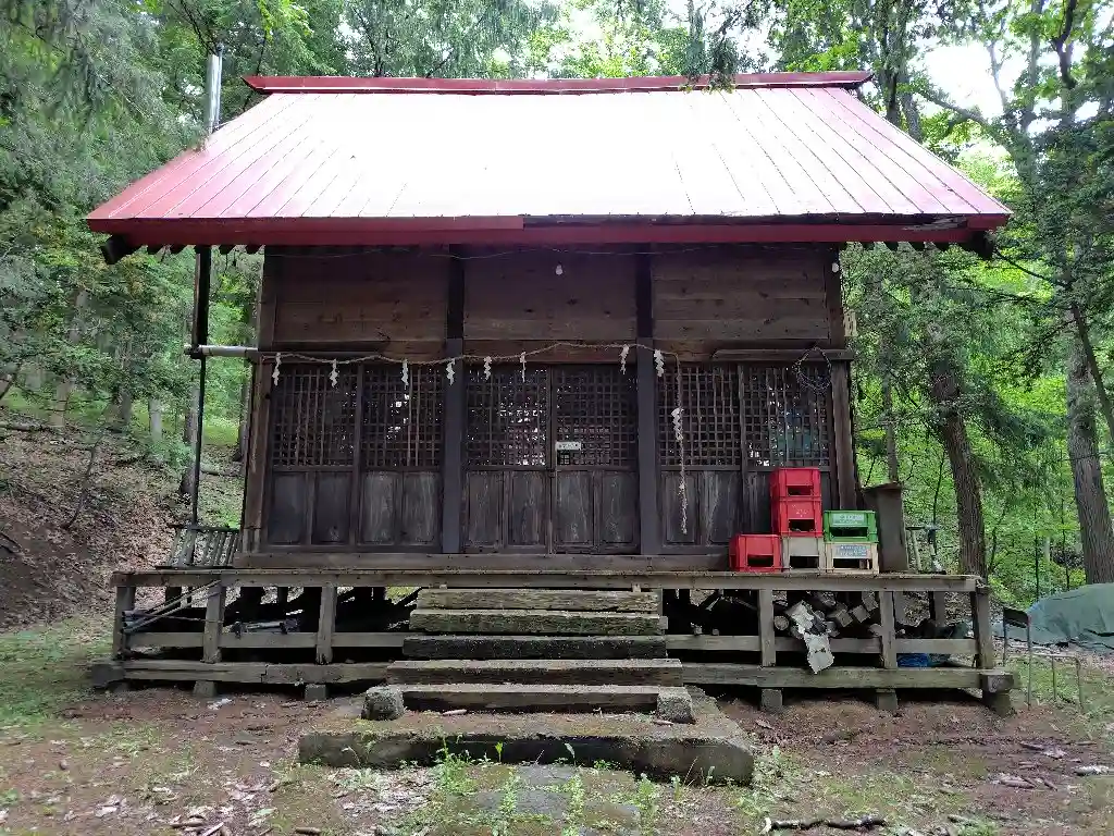 狭い道路から石段があり、上っていくと1組の狛犬と鳥居がありました。