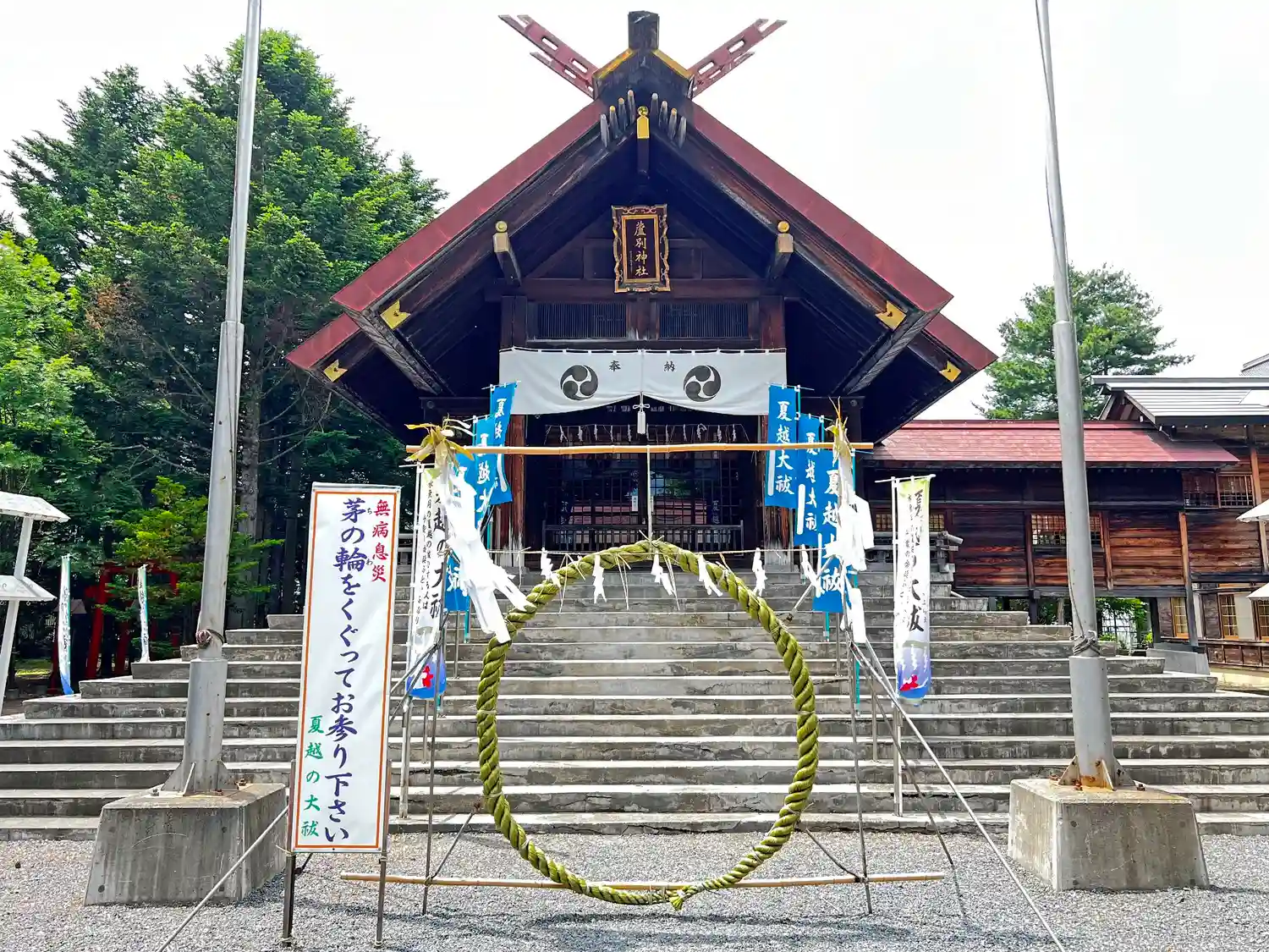 拝殿前には、夏越の大祓のために<茅の輪>が設置されている。