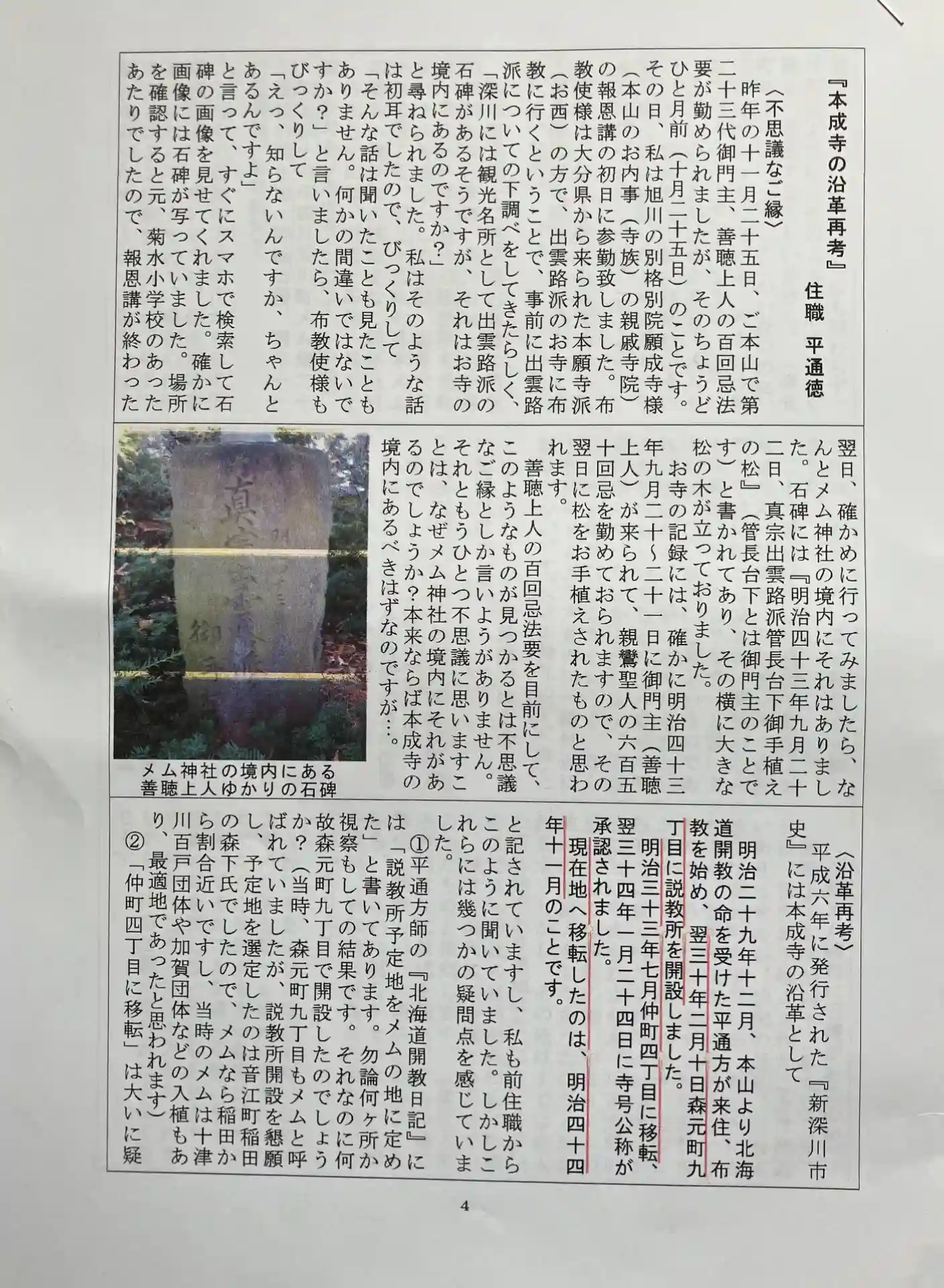 メム神社さん境内にある本山の第二十三世御門主善聴上人さまゆかりの石碑です。
