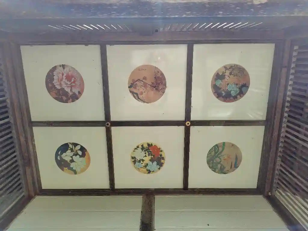 そこから拝殿内部を覗くと、拝殿内の天井にも絵が描かれていることがよくわかりました。