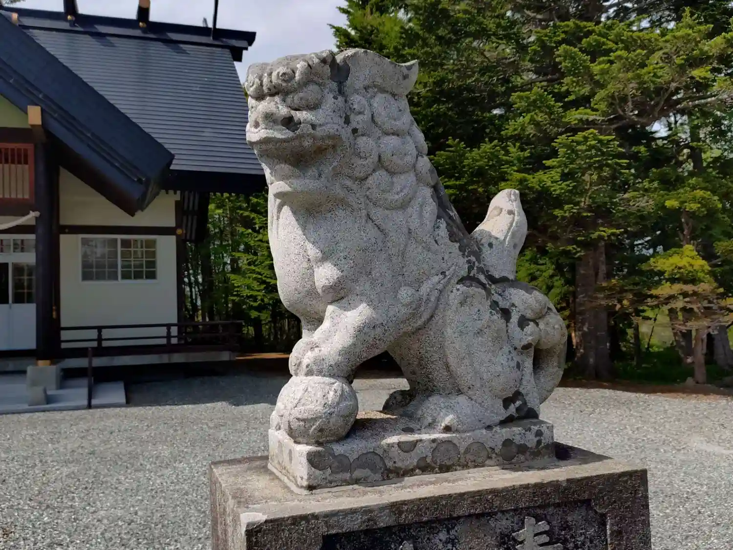 右側の狛犬さん、まりを持ってるのかな?🤔