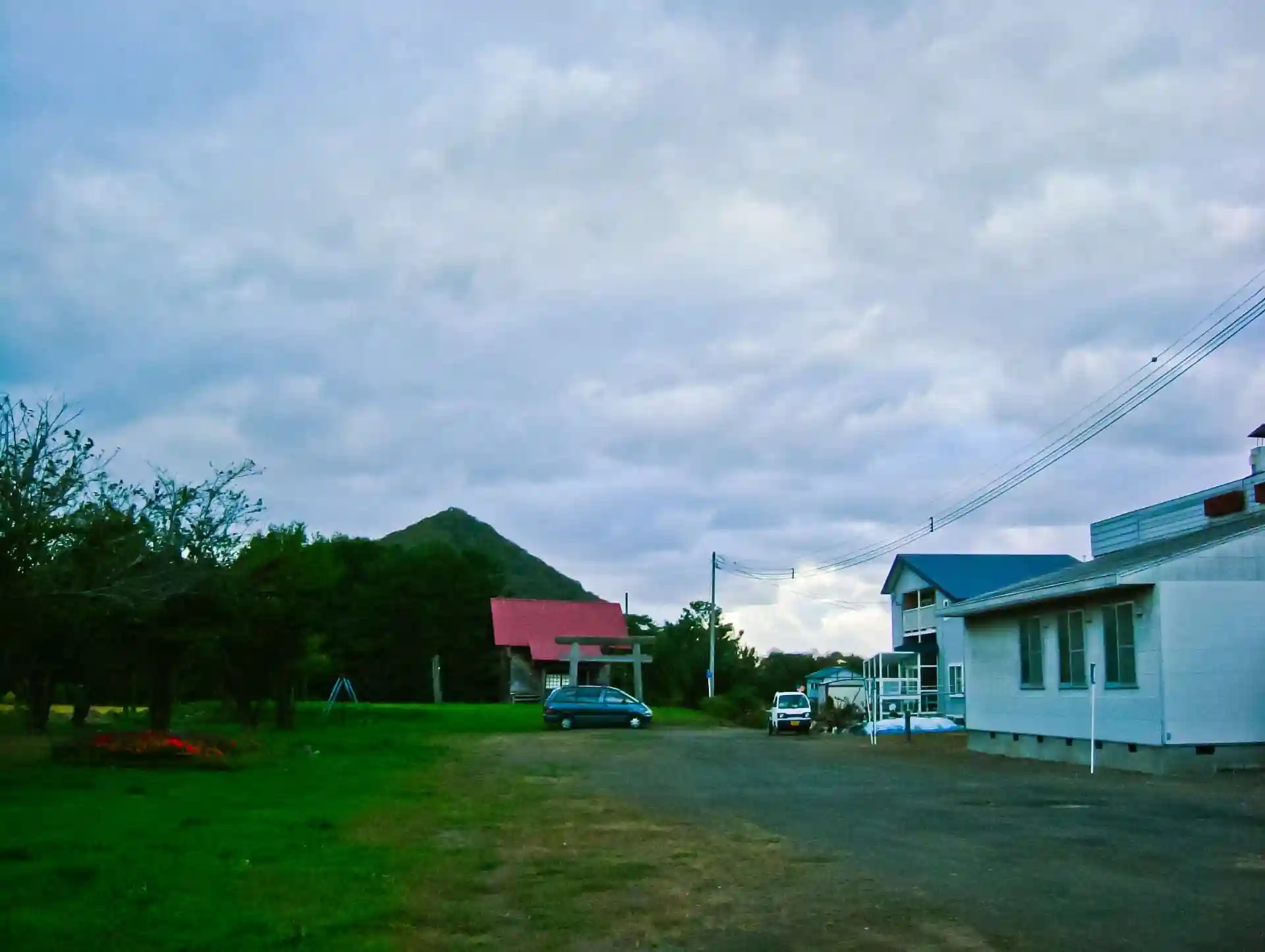 朝に撮った写真。右にある富士山のような特徴的な形の山が黄金山 浜益富士と言われているらしいです。