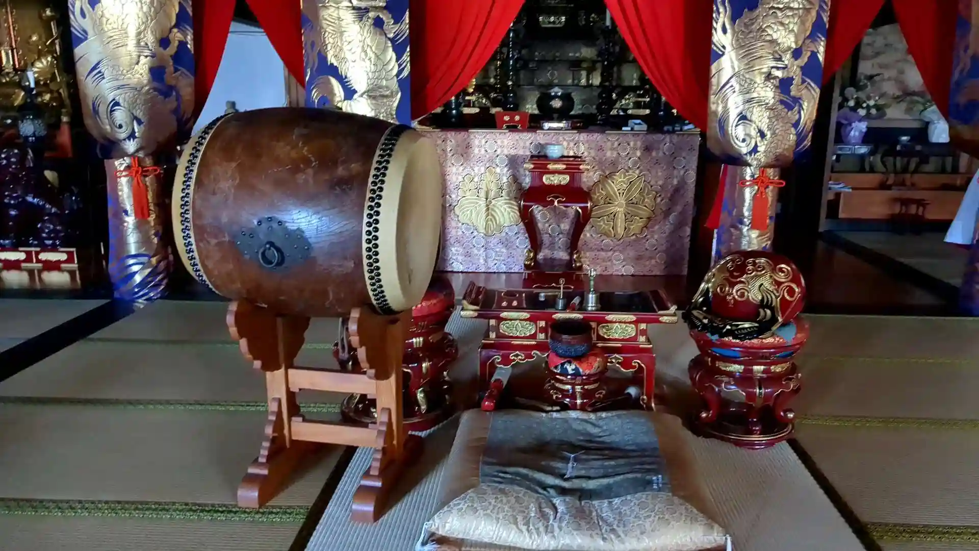本堂の中には立派な御本尊があり他にもいろいろな仏像が祀られています。