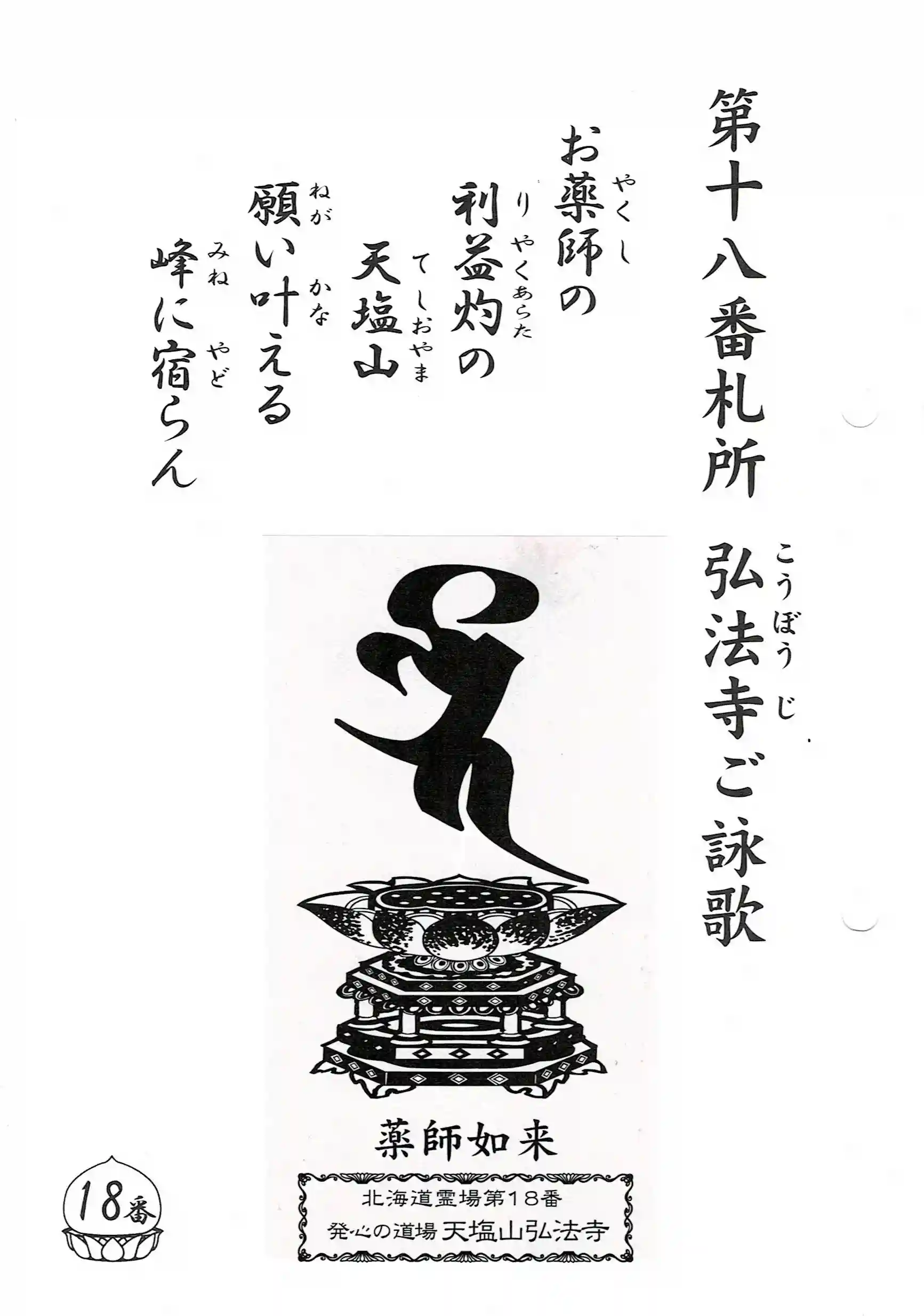天塩山弘法寺は北海道八十八ヶ所霊場第18番札所、北海道三十三観音霊場第28番札所となっています。