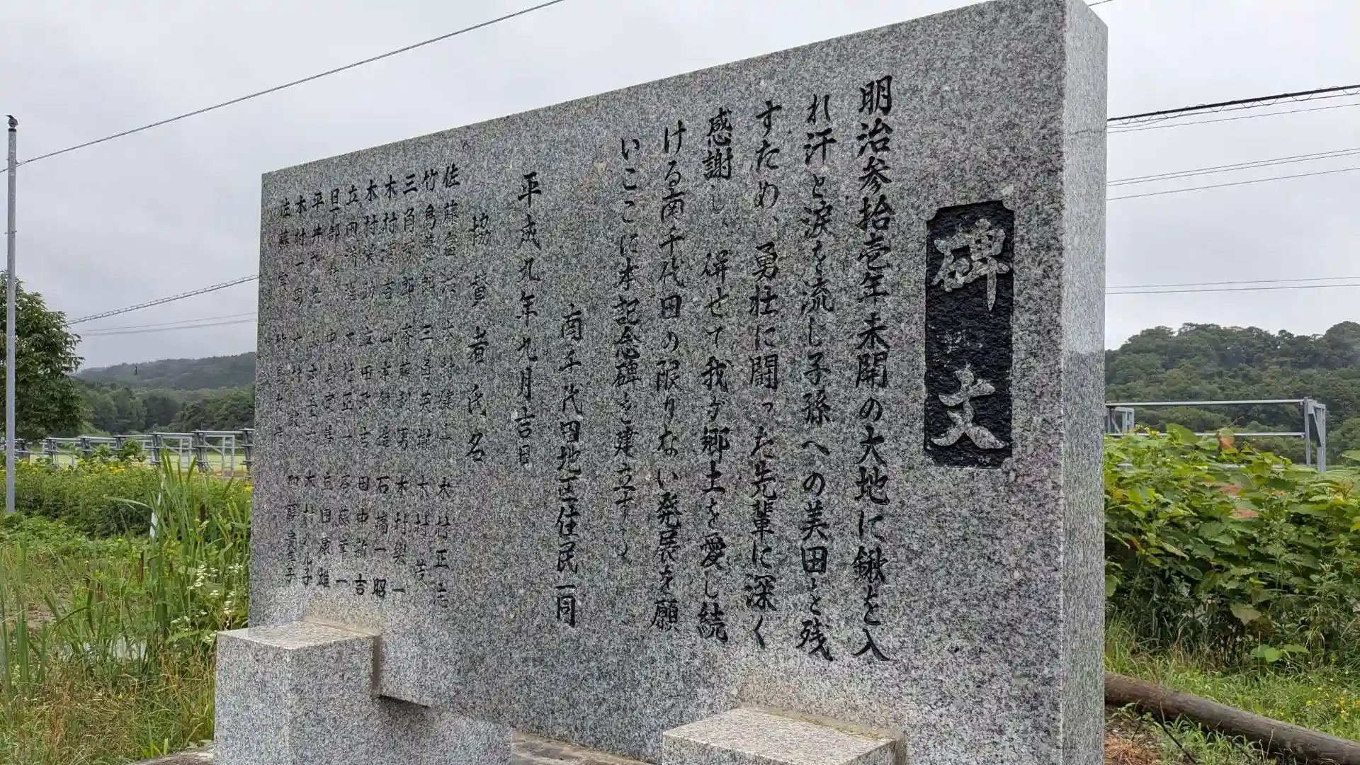 参道の前に馬頭観音と南千代田開基百年碑がありました。記念碑の裏には開拓の歴史と先人達への敬意を込めた碑文が刻まれています。