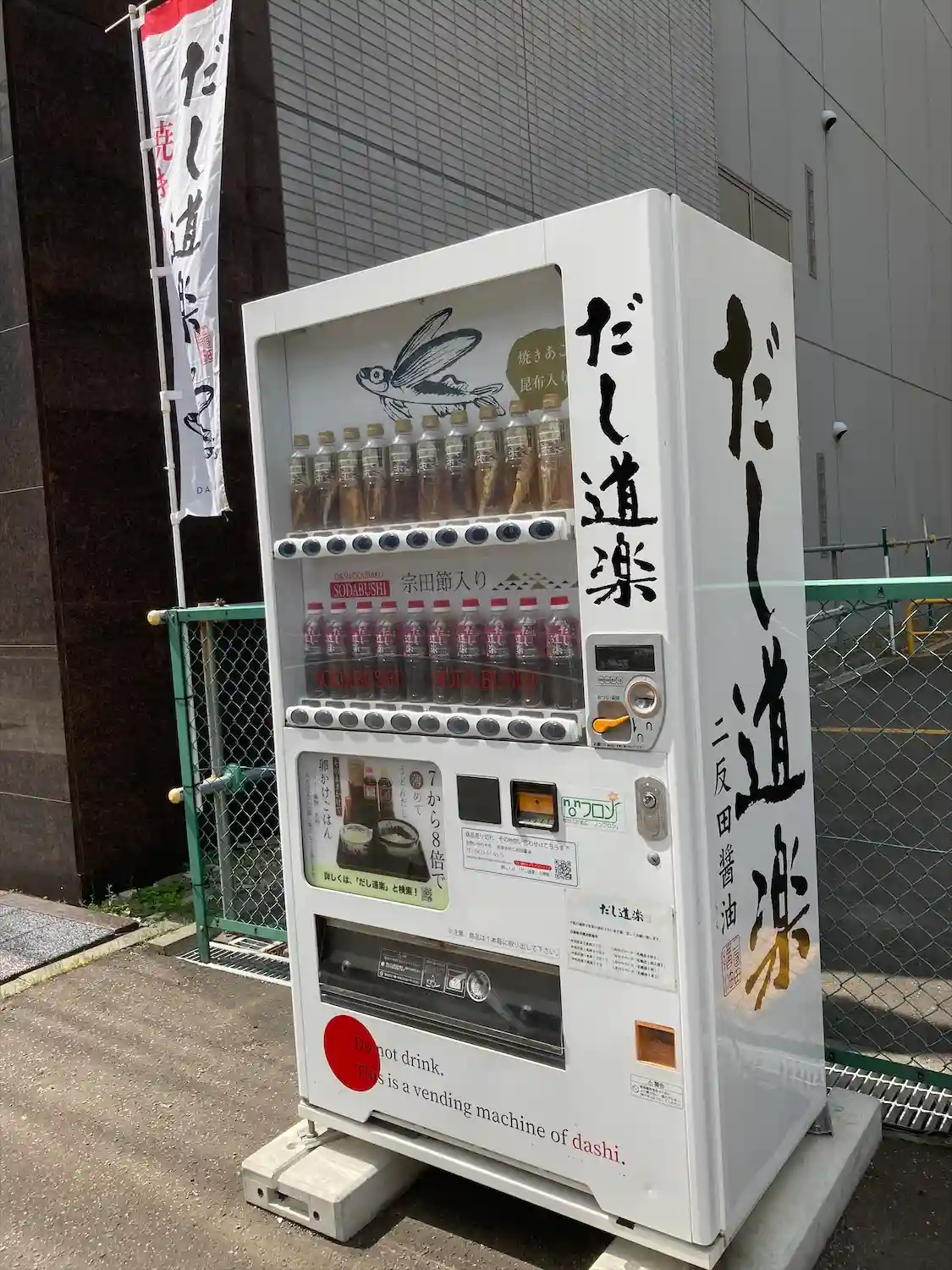 神楽殿前に陣取って、まずは腹ごしらえ。見上げた空には大幟。これを見るとワクワクするのは三つ子の魂でしょうか。