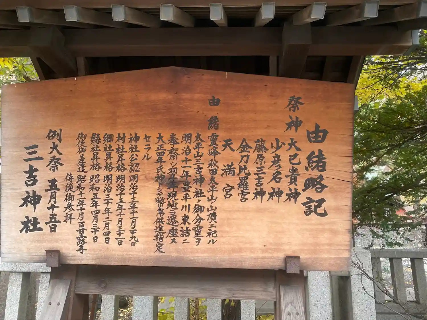明治11年に秋田の太平山三吉神社を分霊したのが起源。