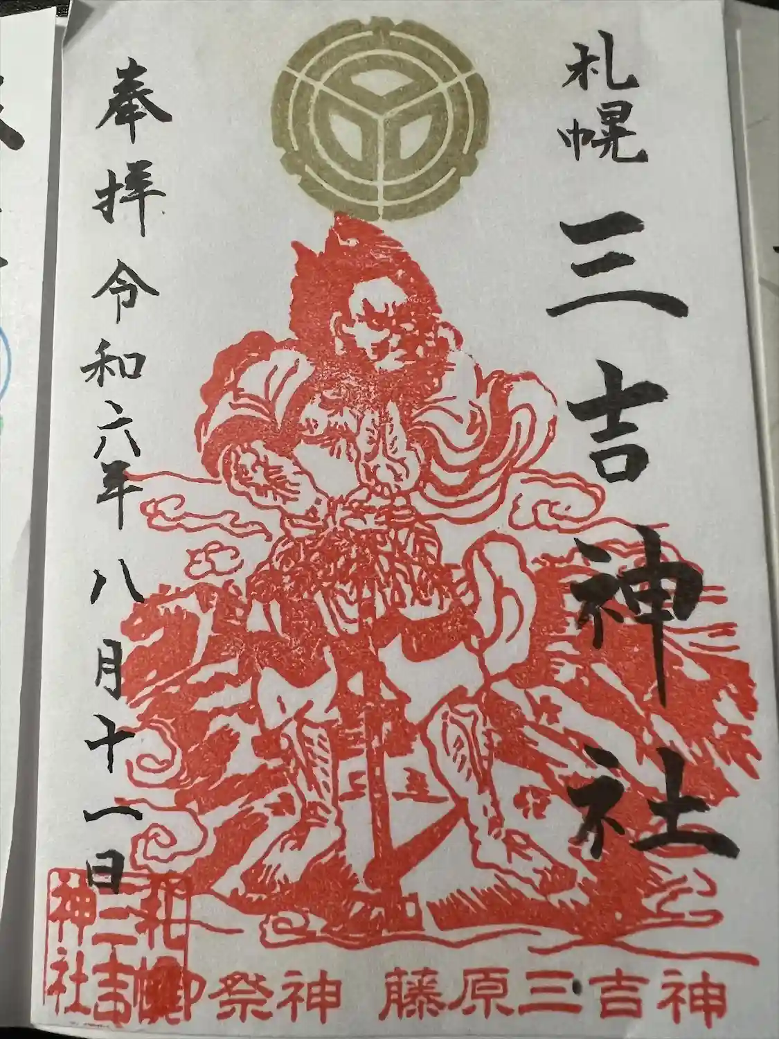 北海道旅行時に三吉神社にて御朱印を(書置対応)