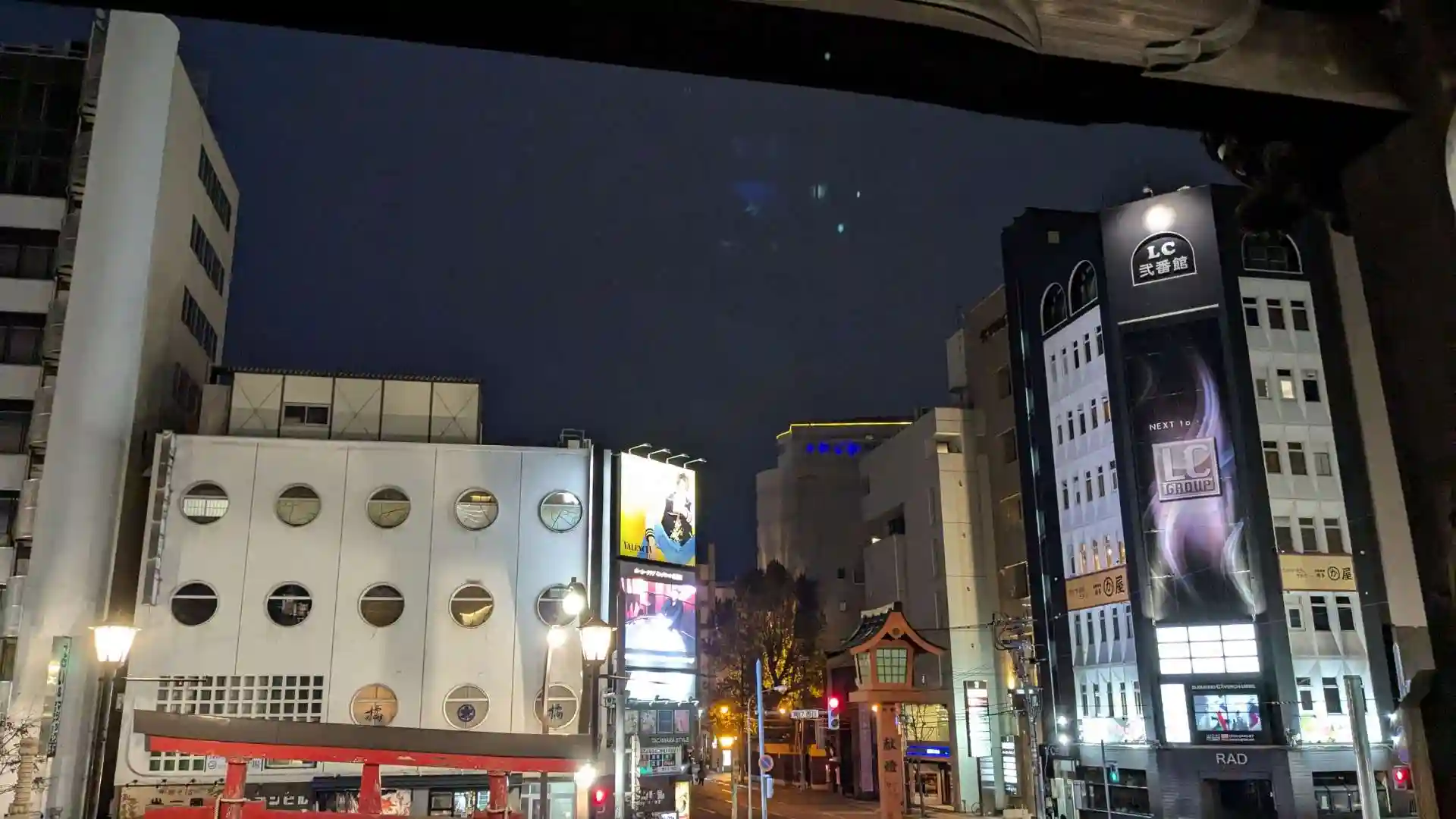 夕方過ぎの遅い時間には寺務所は閉まっていますが本堂は開いていて書き置きの御朱印も置いてあります。本堂に参拝して振り返るとすすきのの夜景が広がっていました。