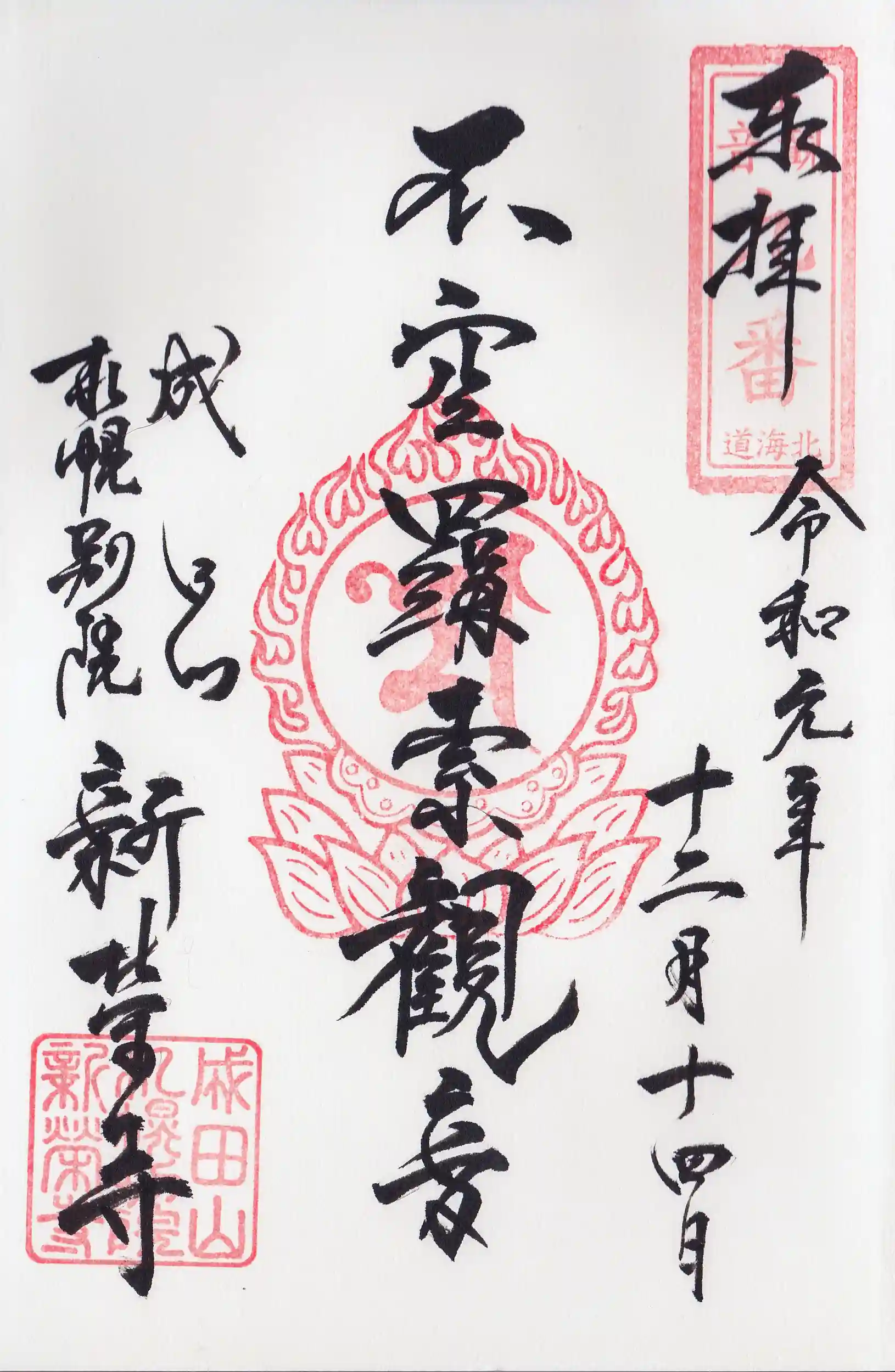 御朱印は不動明王と不空羂索観音の2体があり、両方いただいてきました。