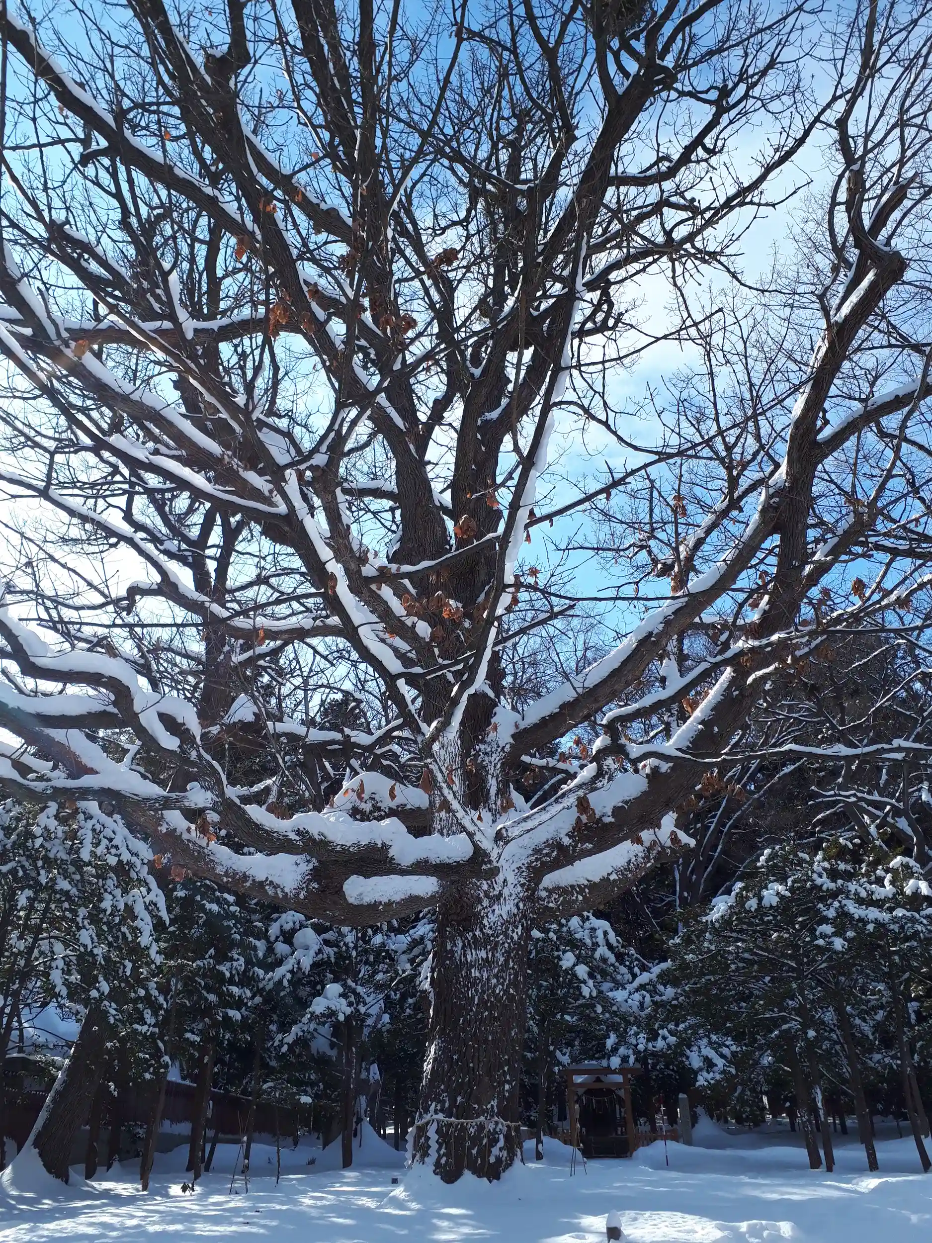 もうそろそろ駐車場も入れるかなと思い、遅めの初詣。混んでました。観光バスが沢山、観光客も沢山。寒いけどお天気が良かったので、雪のなかゆっくりとお散歩。改めて大きな木々をゆっくり見て歩きました。おみくじは吉。