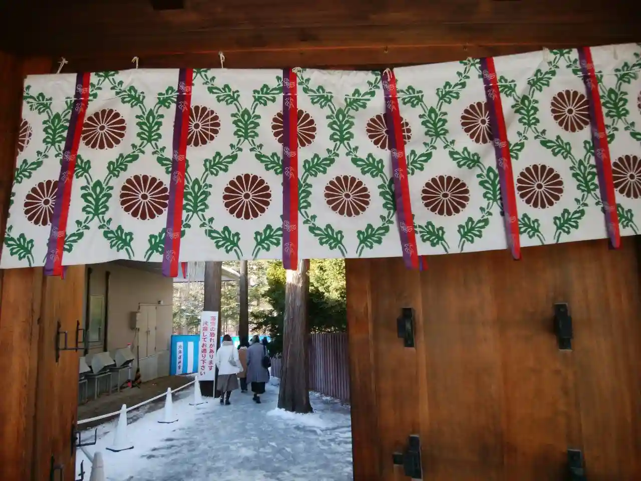 お正月は正面の神門から入り、東回廊途中の扉が出口として開放されていましたよ。