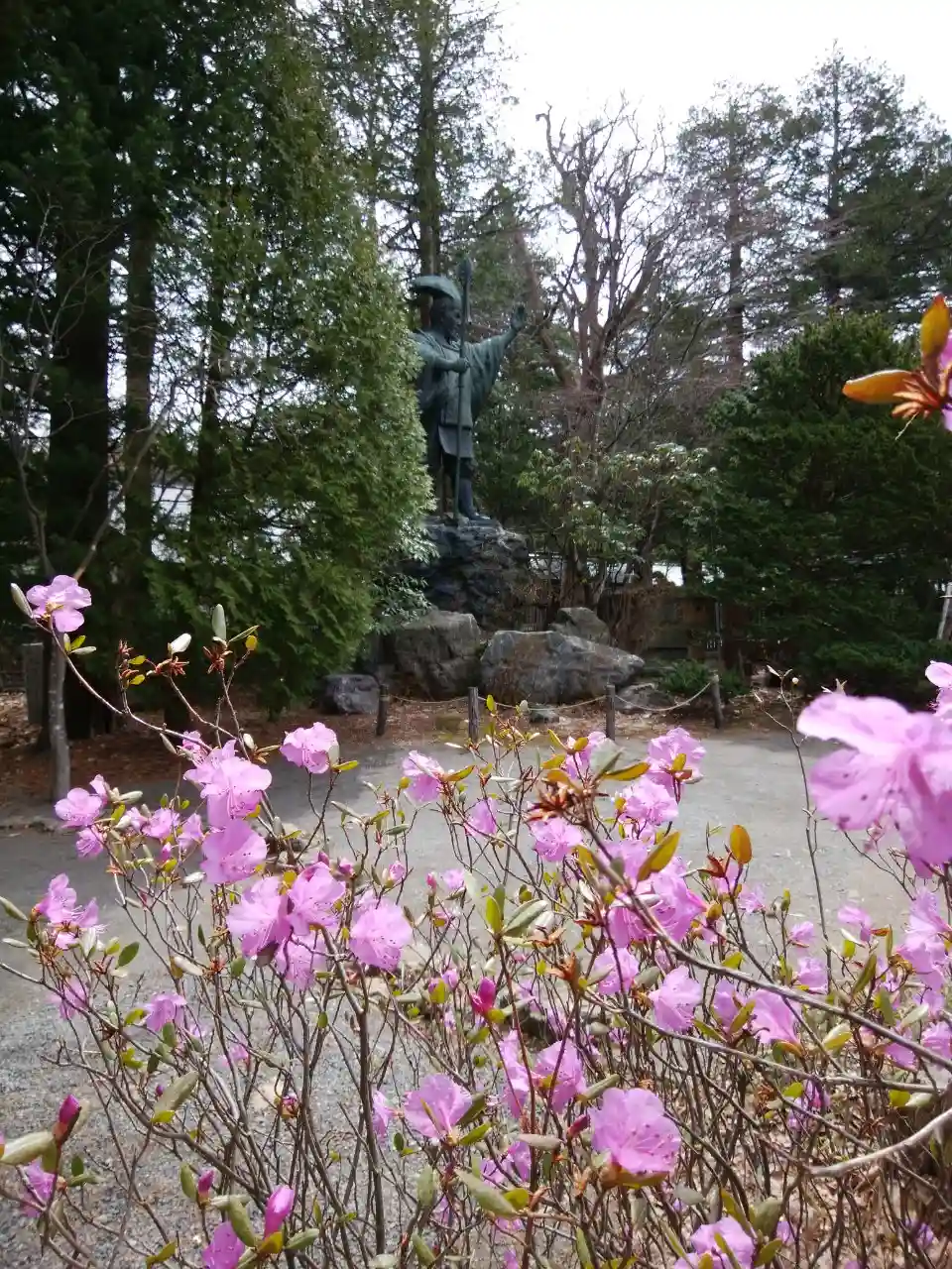 ツツジの奥には判官様のお姿✨